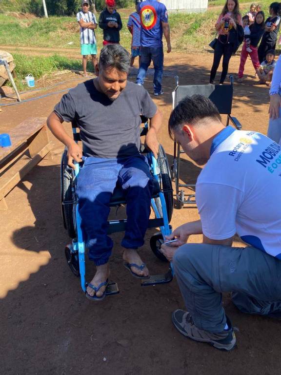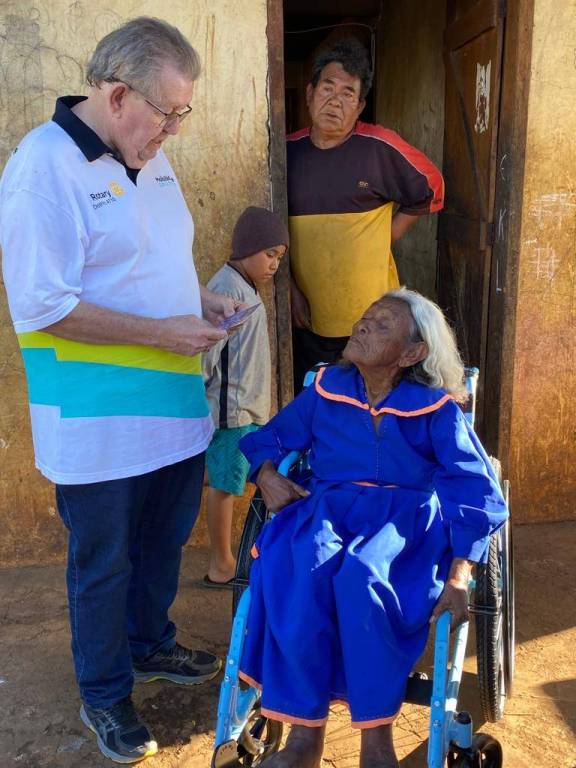 No último dia 03 de junho a “Expedição Aldeias-PR” com rotarianos de ambos distritos, esteve presente nas aldeias de Rio das Cobras, no município de Nova Laranjeiras, entregando 10 cadeiras de rodas para indígenas identificados com problemas de locomoção. No total foram doadas 38 cadeiras de rodas e 38 cadeiras de banho para todo o Distrito Sanitário Especial Indígena – DSEI Litoral Sul que contempla os estados do Paraná, São Paulo e Rio de Janeiro.