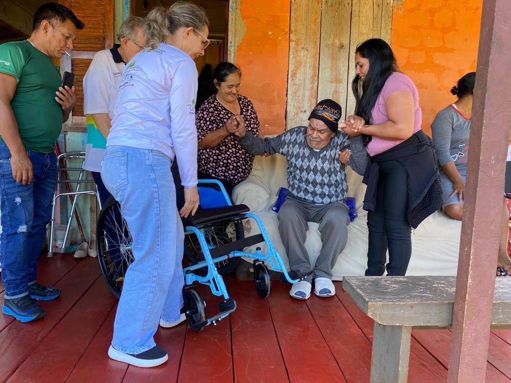 Foi um dia muito especial para o grupo pois ao estarem nos locais de residência dos indígenas, os participantes puderam escutar as histórias de vida deles e ver a emoção de receber o presente da mobilidade, recebendo a cadeira de rodas e também a cadeira de banho.