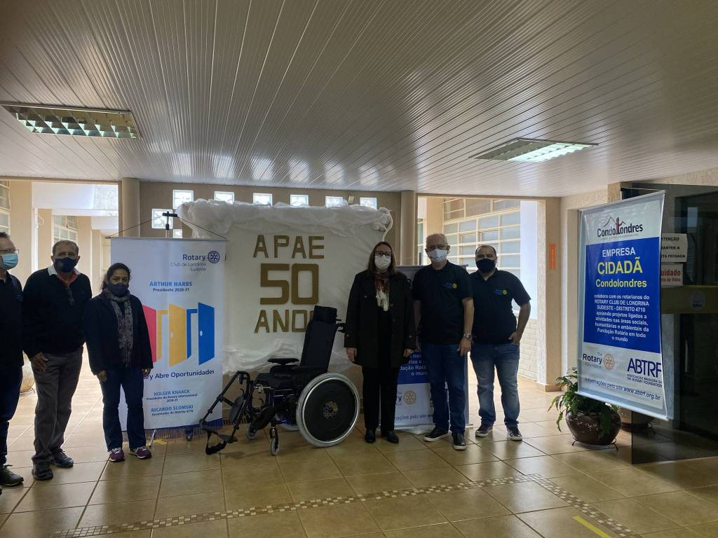 O Rotary Club de Londrina - Sudeste entregou hoje 11/06/2021 uma cadeira de rodas especial para a APAE de Rolândia. Foi uma forma de presentear essa amada instituição que completa 50 anos de serviços prestados a comunidade. Após a entrega, fomos convidados a conhecer todo o trabalho desenvolvido pela instituição e conhecer suas dependências. O Rotary Club de Londrina - Sudeste agradece aos parceiros que ajudaram na aquisição da cadeira e parabeniza a APAE de Rolândia pelos seus 50 anos de ótimos serviços prestados a comunidade.