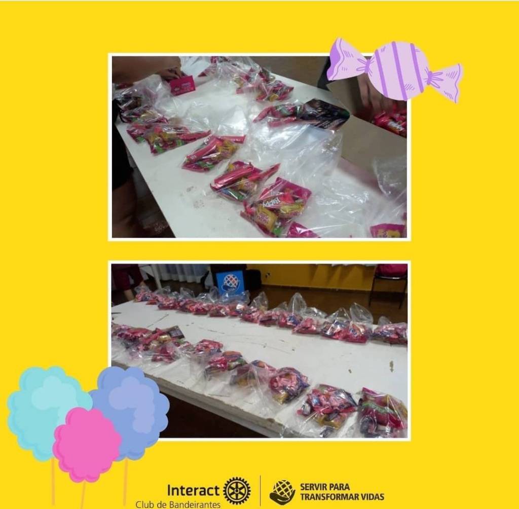 Em companherismo com o Rotaract Club de Bandeirantes, o Interact foi convidado para realizar um dia das crianças para aqueles que detém um pouco mais de necessidades. O projeto se constituiu em receber doações da comunidade/lojas/associados dos clubes, para que assim pudesse fazer ''saquinhos de doces'' para ser distribuídos em vilas mais carentes de nossa cidade. Os companheiros de carro andaram pela cidade fazendo essas partilhações com as crianças. As vilas que receberam essas contribuições foram: Vila Itapeva, bairro Invernada, Pombal, Habitar Brasil, Jardim Paraíso. Os doces foram repartidos pelas vilas que passamos, todos foram entregues com segurança e sem nenhum risco.