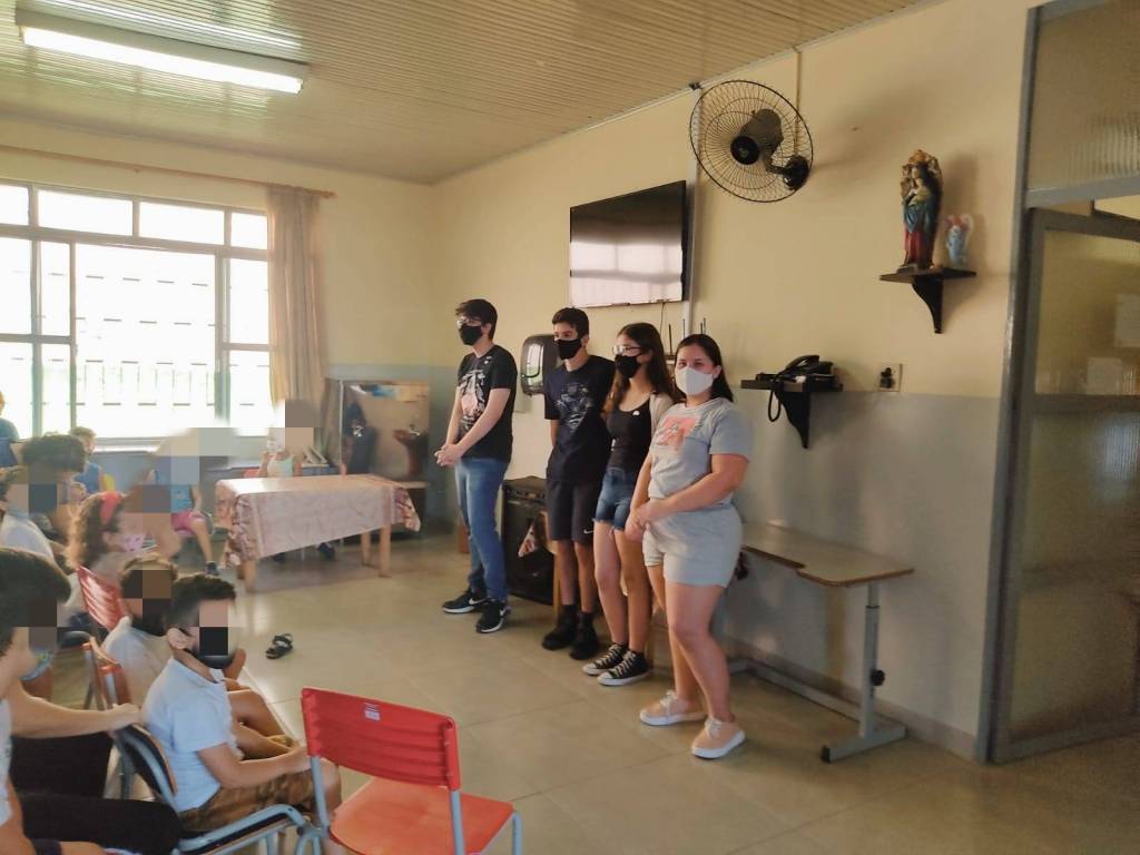 Para o quarto dia da SMI a companheira Carla Gabriela organizou uma contação de história na APAE, ela entrou em contato com sua professora Elisangela Trovao que comunicou a direção da escola e passou todas as informações, fazendo assim lberarem a nossa presença no dia 04/11 Às 14 horas. A professora ajudou bastante na realização desse projeto, proferiu abordando que seria interessante contarmos uma relacionada ao conteúdo que estavam aprendendo. A história contada foi uma lenda chamada ''Cataratas do Iguaçu'', os companheiros João Manuel, Luana, Nathan e Gabrielle dialogaram com eles de uma forma breve e objetiva e logo após entregaram uma folha ilustrativa da história para pintar em sala de aula. Os professores e alunos gostaram bastante de nossa presença naquele dia. Eles também aproveitaram para mostrar a escola e como os profissionais atuam.