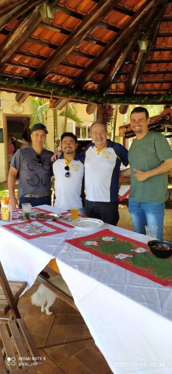 Confraternização entre os Companheiros e familiares no Sítio São Francisco, do Companheiro Nercio onde possui o Bosque Centenário do RI. Durante a confraternização aconteceu a posse do novo associado Juliano Valentim do Nascimento. O G.A. Arthur e sua esposa Verônica prestigiaram o evento alegremente.