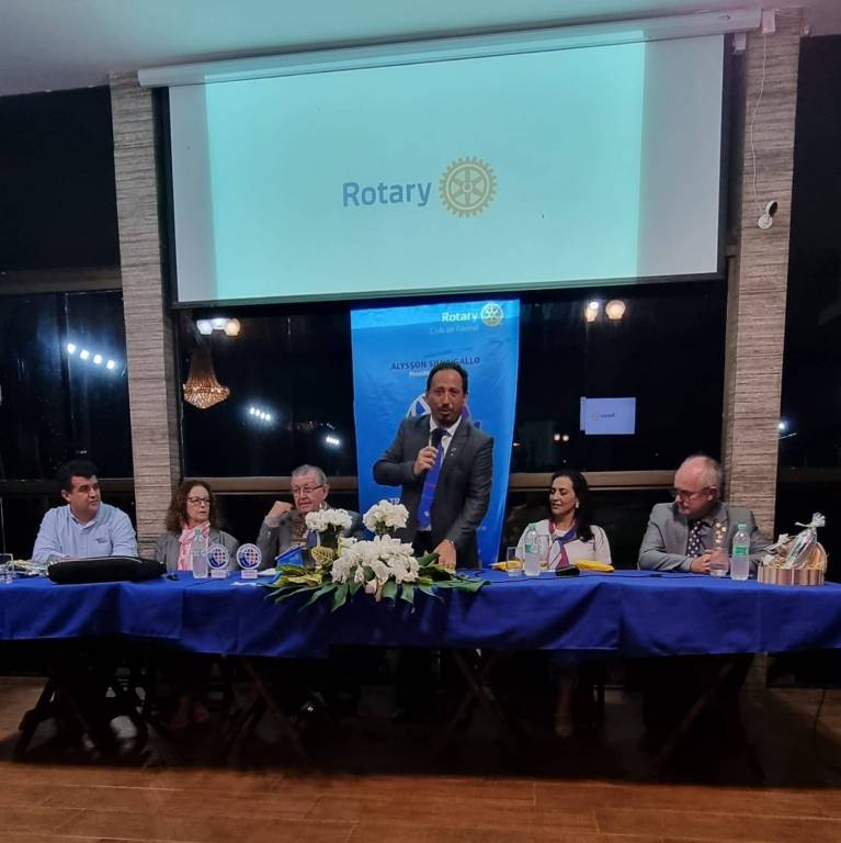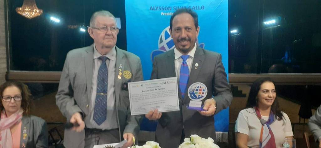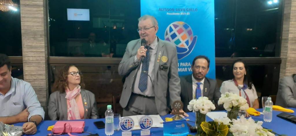 Com a palavra o Goverandor entregou alguns certificados ao Presidente por ter completado metas e particpado de eventos do Distrito, o Governador certificou a empresa cidadã Imobiliária Faxinal https://www.faxinalimoveis.com.br/imoveis/ e certificou o Companheiro Hermes Santa Rosa com o certificado Companheiro Paull Harris. Em seguida foi doado o Lar São Vicente de Paula um computador obtido através da empresa e-letro Recuperação de Eletrônicos https://www.facebook.com/ong.eletro/ e do companheiro Alex Gonçalves. O Governador Paulo Roberto Balla iniciou seu discurso e fez uma explanação de como está o cumprimento das metas dos distrito e dos planos de ação para alavancarmos ainda mais as atividades e elevar o nome do Rotary na comunidade.