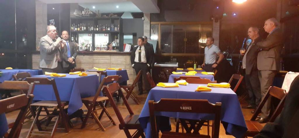 Encerrada a reunião foi servido um delicioso jantar, oferecido pelo companheiro Alberto Henrique proprietário do local, e todos disfrutaram de momentos de alegria e companheirismo.