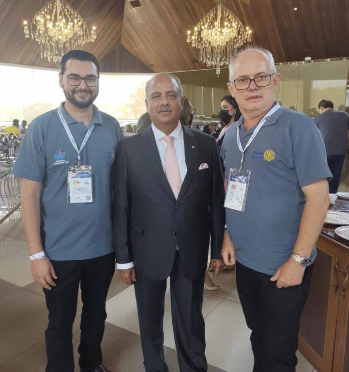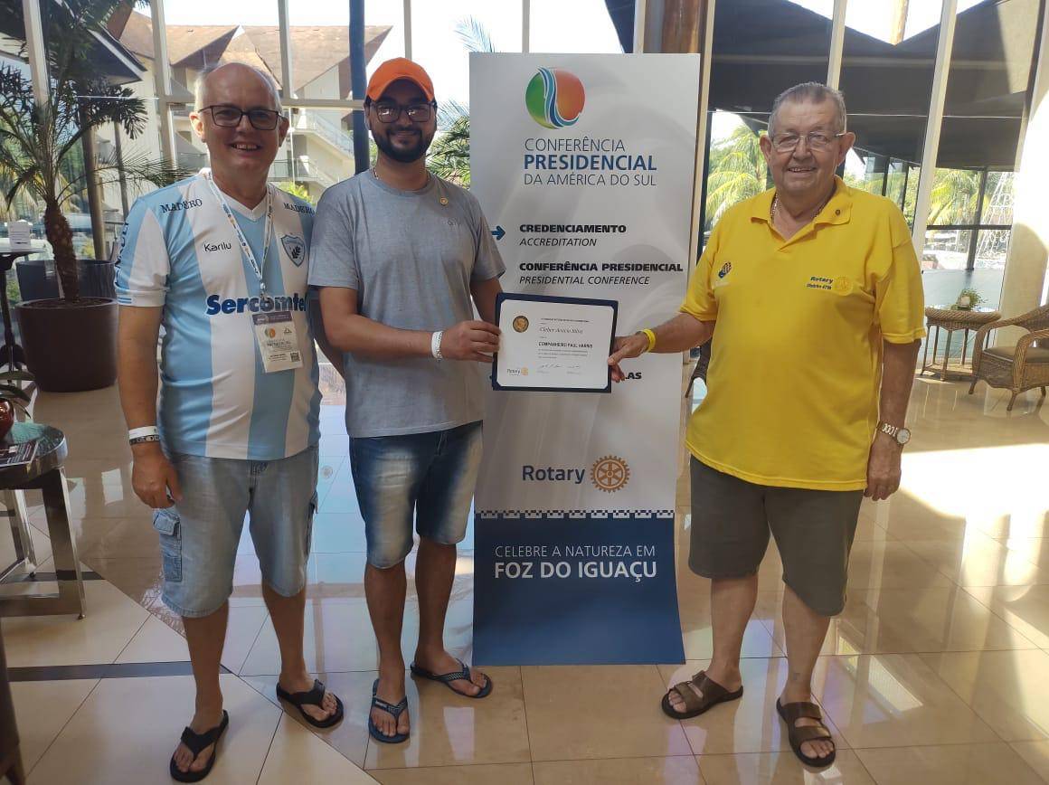 Governador Paulo Balla entregando o Paul Harris ao companheiro Cléber acompanhado do GA Artthur
