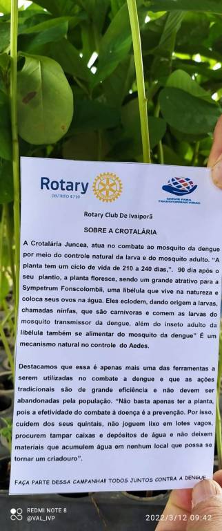 O Rotary Club Ivaiporã entrou nesta disputa do bem e entregou mudas de crotalária a população👏