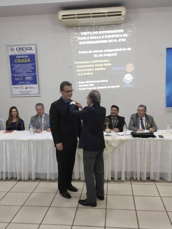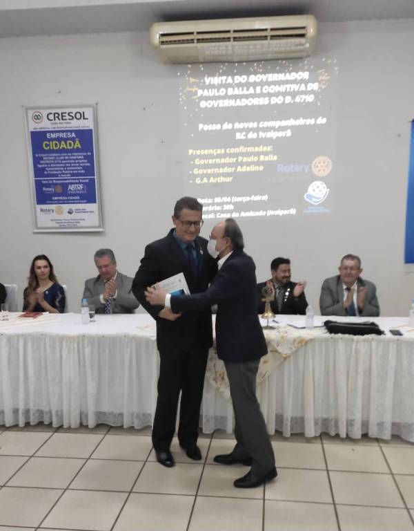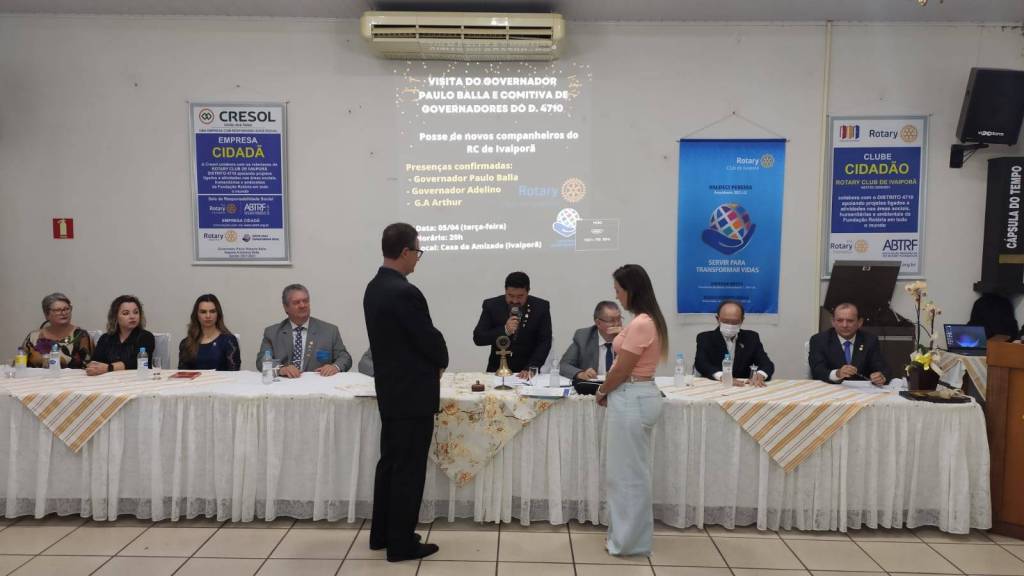 Com entusiasmo e em clima de muita alegria o RC de Ivaiporã empossa 2 novos associados no dia 05 de abril durante a reunião festiva que contou contou com a presença do Governador Paulo Balla e sua Comitiva de governadores; os Companheiros do RC de Jardim Alegre e Ivaiporã Integração; ASR, familiares e amigos dos novos associados: Marcos Vieira e Renata Cereja. Com elevada honra foram admitidos no RI na categoria de Odontologia e Gerente de Negócios e juntam-se a maior associação do mundo em prestação de serviços sociais.