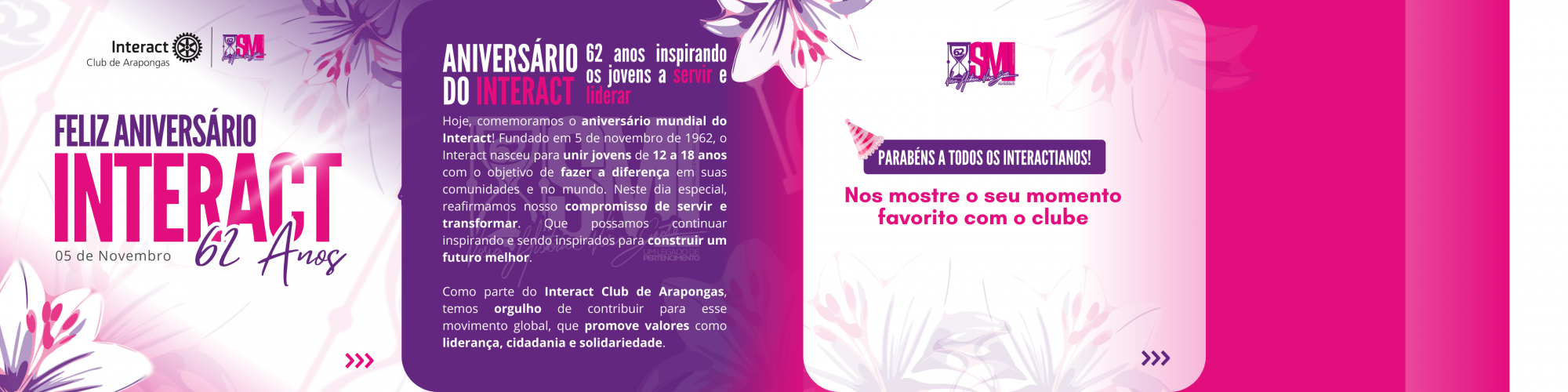 No dia 5 de novembro, o Interact Club comemorou 62 anos de história. Nesta data, encerramos a nossa Semana Mundial de Interact, destacando para o mundo o poder do voluntariado e a força da liderança juvenil.