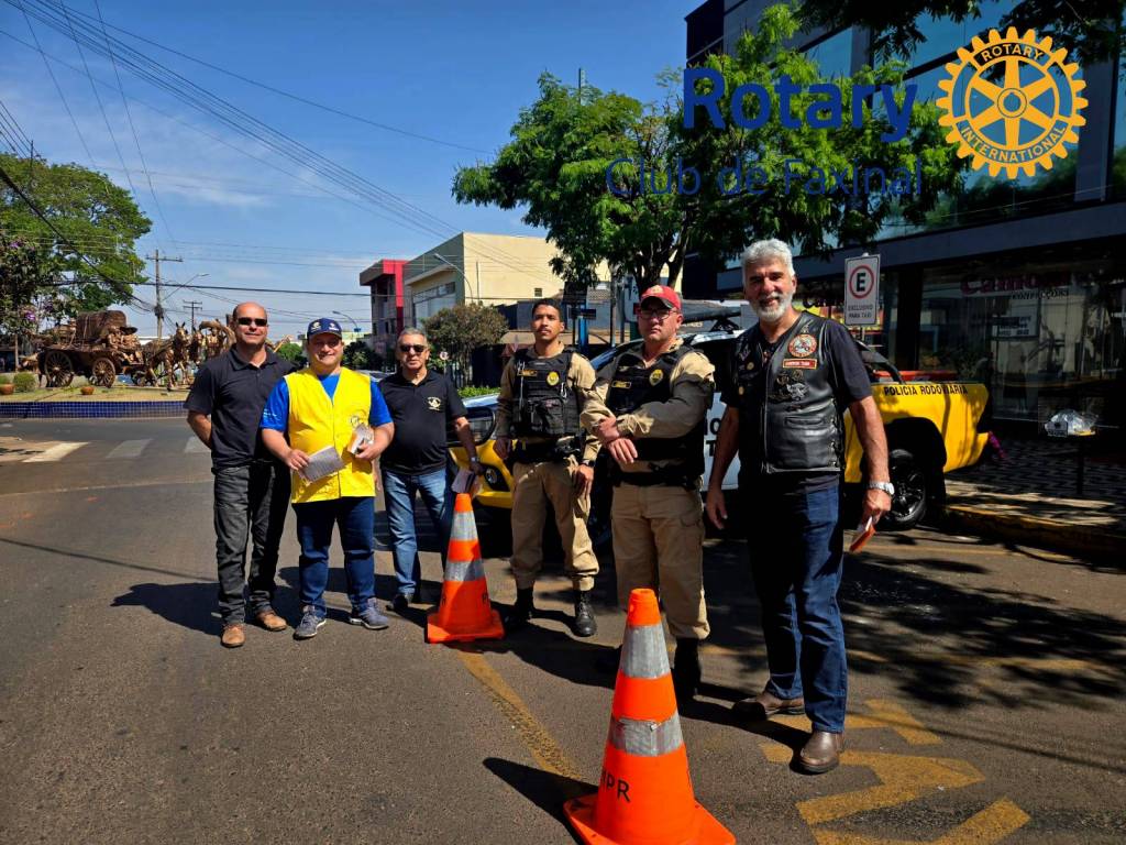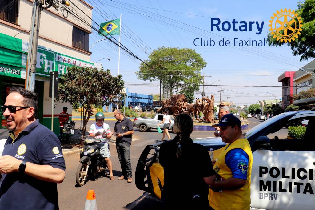 Neste sábado, 20/Set, em parceria com a Loja Maçônica XIII de Maio, o Rotary Club de Faxinal ajudou na panfletagem alertando sobre os cuidados com o trânsito, máquinas agrícolas em rodovias, bebidas, celulares e outros cuidados que um bom motorista deve ter quando estiver na direção. Além da própria vida deve estar zelando pela vida das pessoas que estão com ele em seu veículo, outros motoristas, pedestres, animais e uma quantidade imensa de fatores que podem causar um acidente. A prevenção é a melhor defesa. A campanha iniciada pelo Venerável Alessandro Bellonci foi apresentada ao Presidente do Rotary Club de Faxinal, Alessandro Olegário de Proença pelo irmão João Pedro Taborda, que repassou a ideia da parceria ao companheiros de Rotary e juntando as forças, o evento se tornou um sucesso. Além da Loja e do Rotary, participaram do projeto A Polícia Militar e o Rotaract, representado pela sua Presidente Milena Guabiraba. Agradecemos à todos os envolvidos e que venham mais parcerias!!