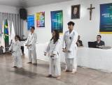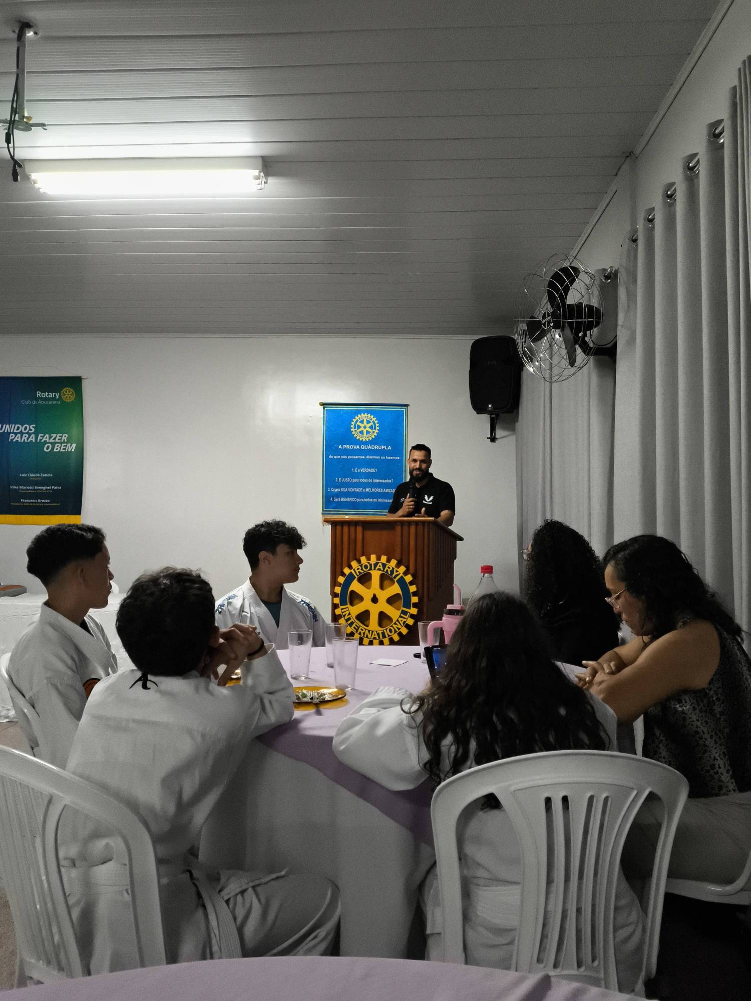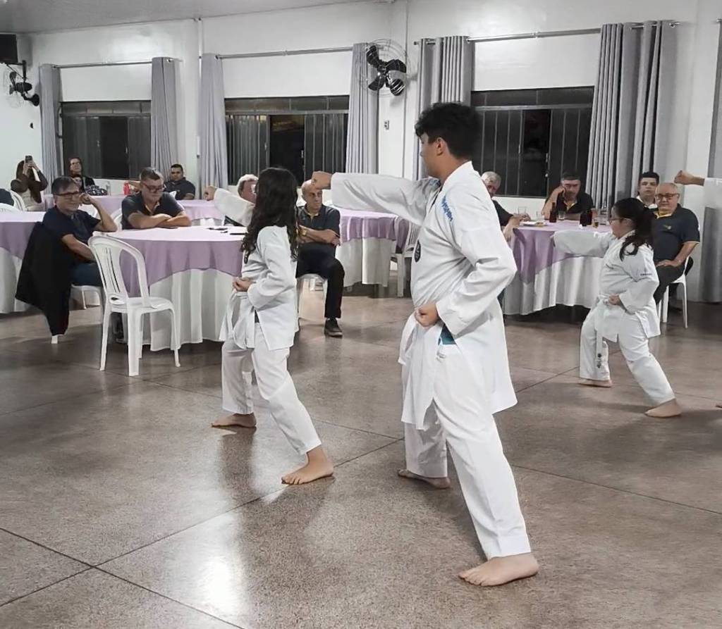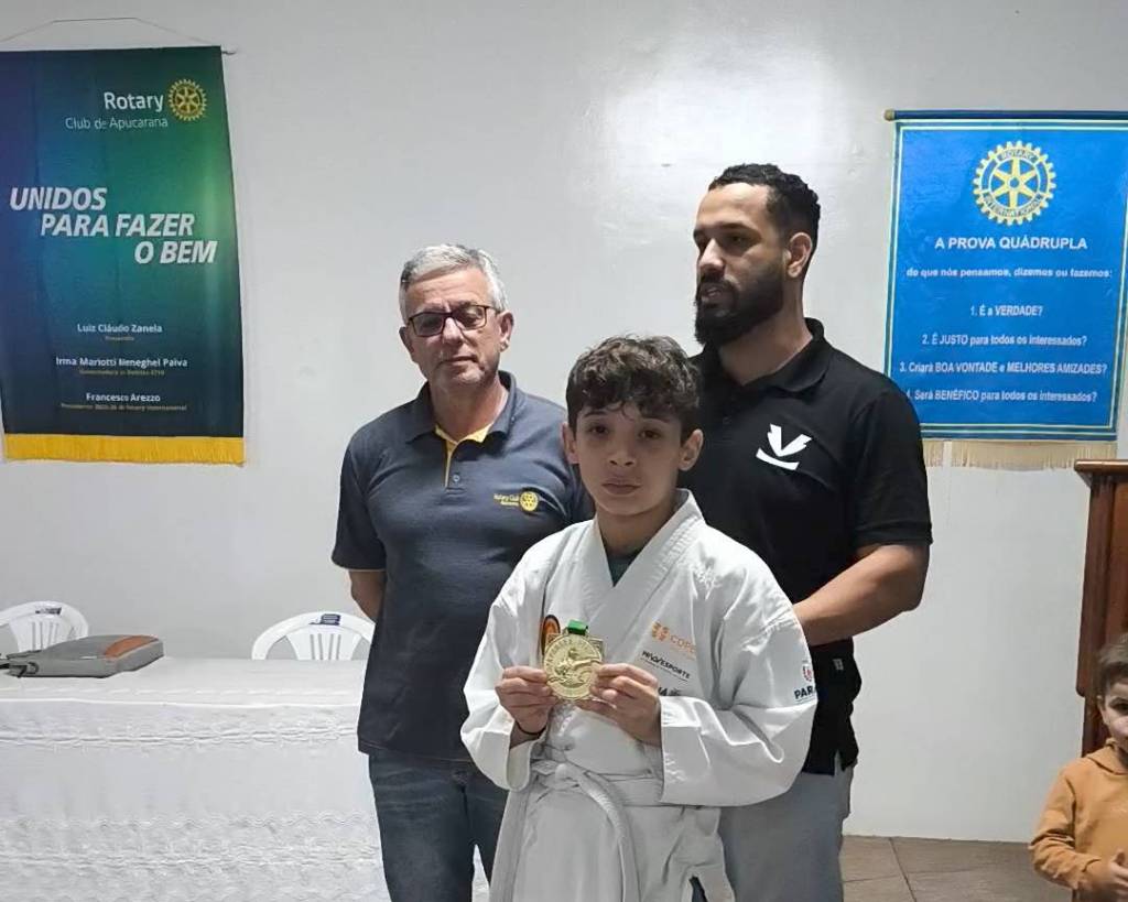 Na reunião do dia 28 de outubro, o Rotary Club de Apucarana viveu um daqueles momentos que traduzem, de forma simples e concreta, o significado de estar em ação. Atletas da Associação Kara Te Vida solicitaram espaço na reunião para apresentar um kata e entregar uma medalha ao clube, como forma de agradecimento pelo patrocínio concedido para a participação em um campeonato.