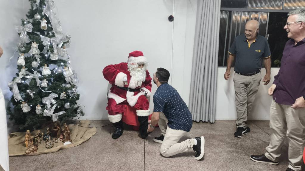 O encontro foi marcado por sorrisos, expectativa e encantamento. Um dos momentos mais aguardados da noite foi a chegada do Papai Noel, que distribuiu presentes às crianças presentes no evento, reforçando o espírito natalino e criando memórias que permanecem para além daquela noite.