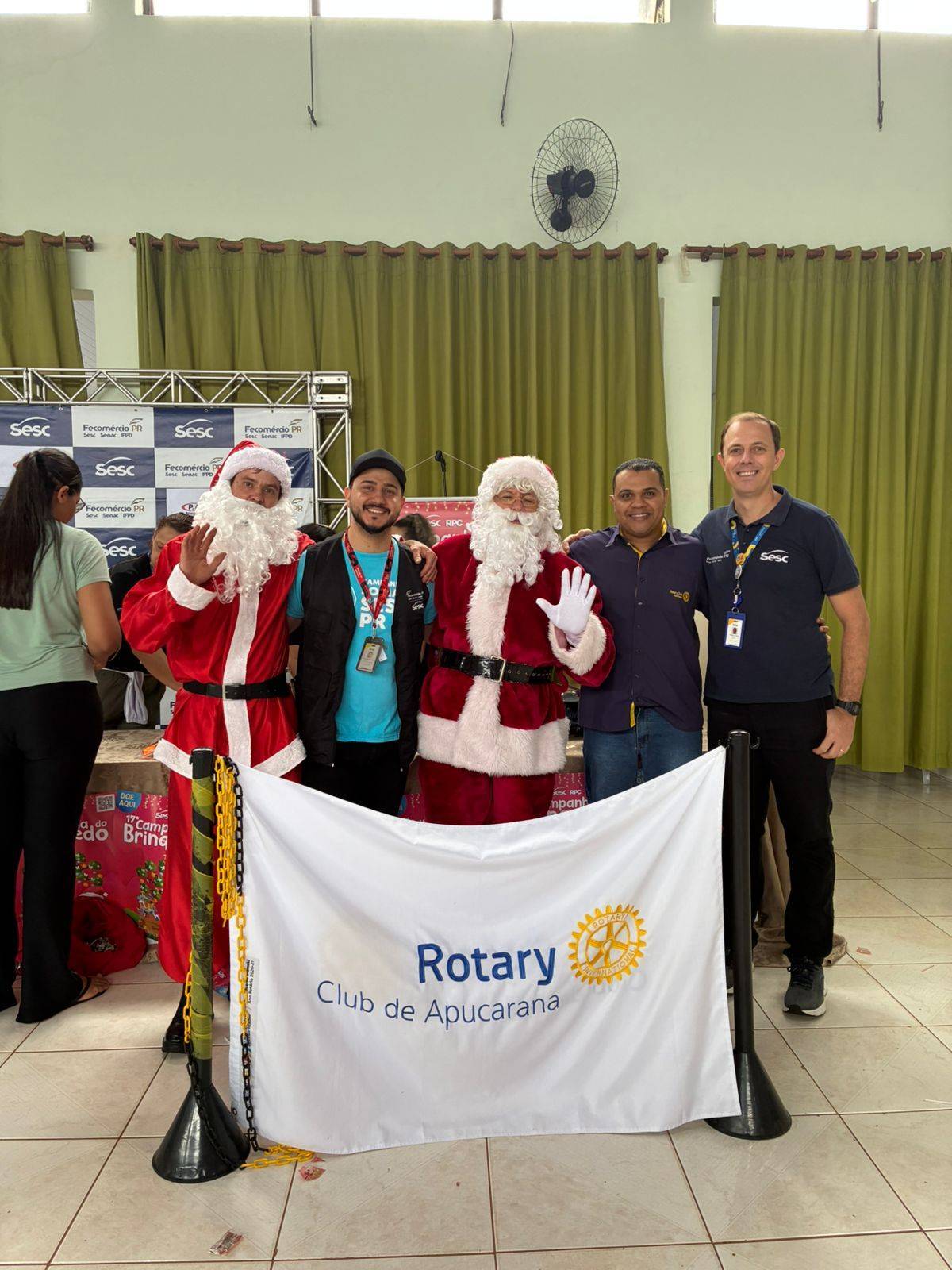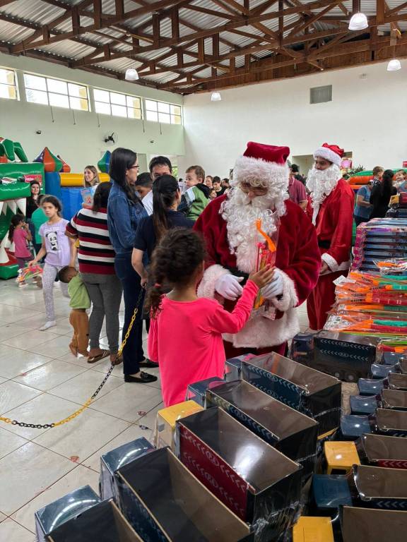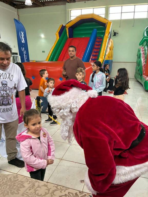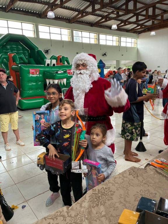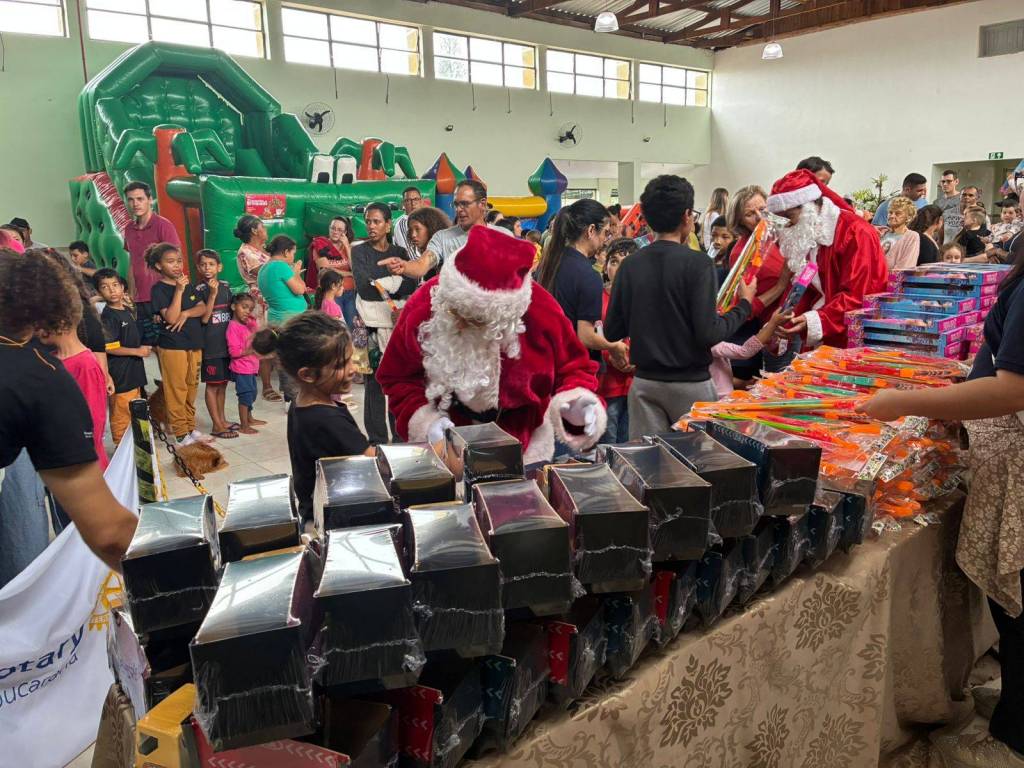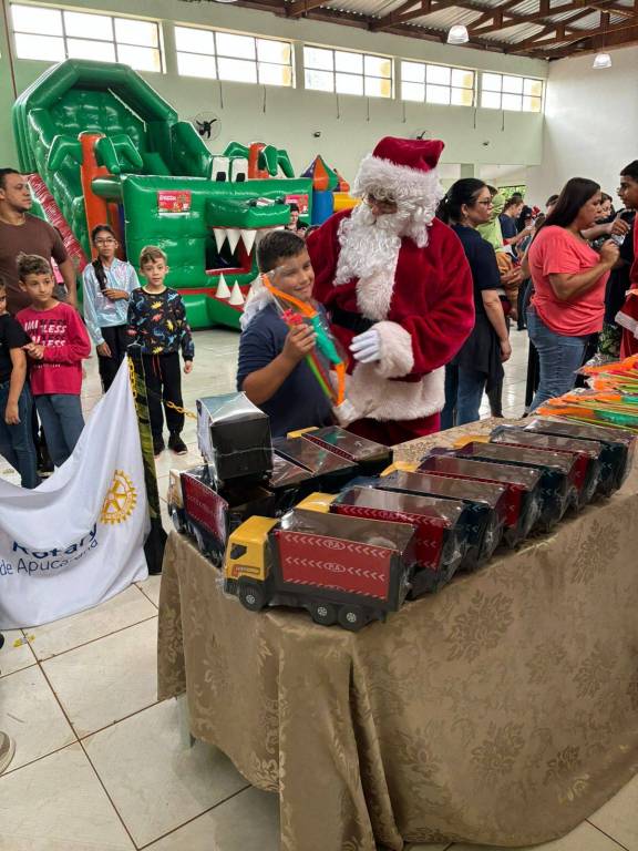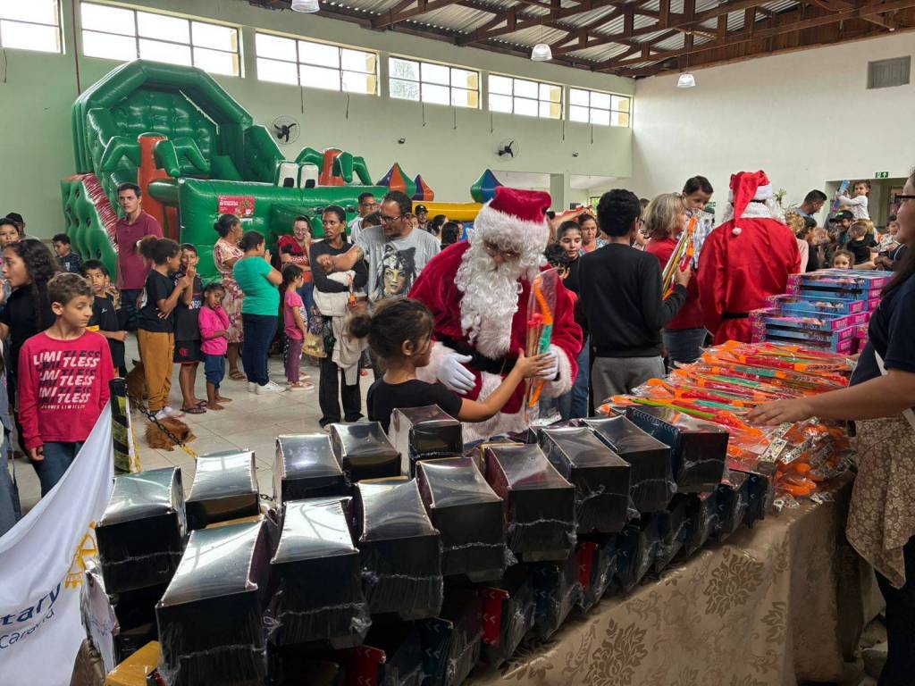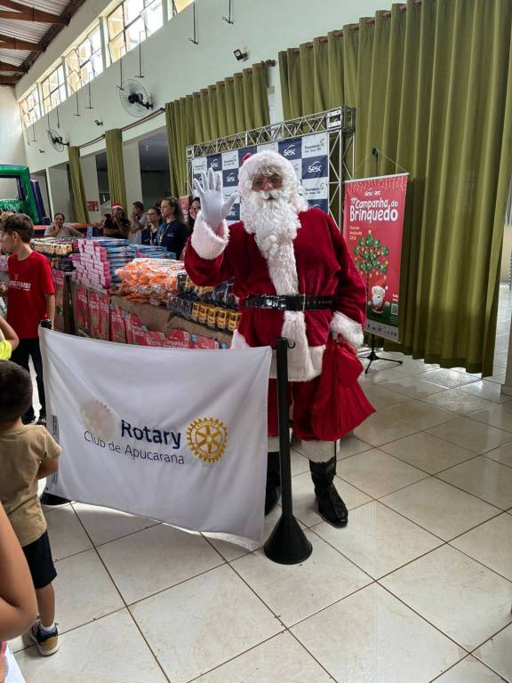 A ação contou com a participação de dois companheiros do Rotary Club de Apucarana, sendo que um deles assumiu o papel de Papai Noel, tornando o encontro ainda mais marcante para os pequenos. O evento foi organizado pelo SESC Apucarana, que estruturou o espaço e convidou todas as crianças do município para participar.