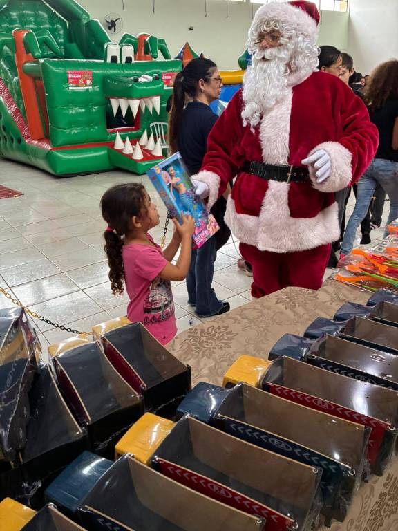 Durante a manhã, as crianças puderam aproveitar um ambiente preparado para a diversão, com brinquedos disponíveis e a entrega de presentes feita pelo Papai Noel. Mais do que receber um brinquedo, elas tiveram a oportunidade de viver um momento de encantamento, reforçando o espírito natalino e criando lembranças que permanecem.
