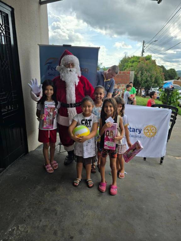 A campanha contou com a participação direta de três companheiros do clube, sendo que um deles vestiu-se de Papai Noel, tornando a experiência ainda mais especial. Somando esforços, o clube — juntamente com a doação do presidente do ano rotário 2025–2026 — contribuiu com 150 brinquedos, que foram entregues às crianças durante a ação.