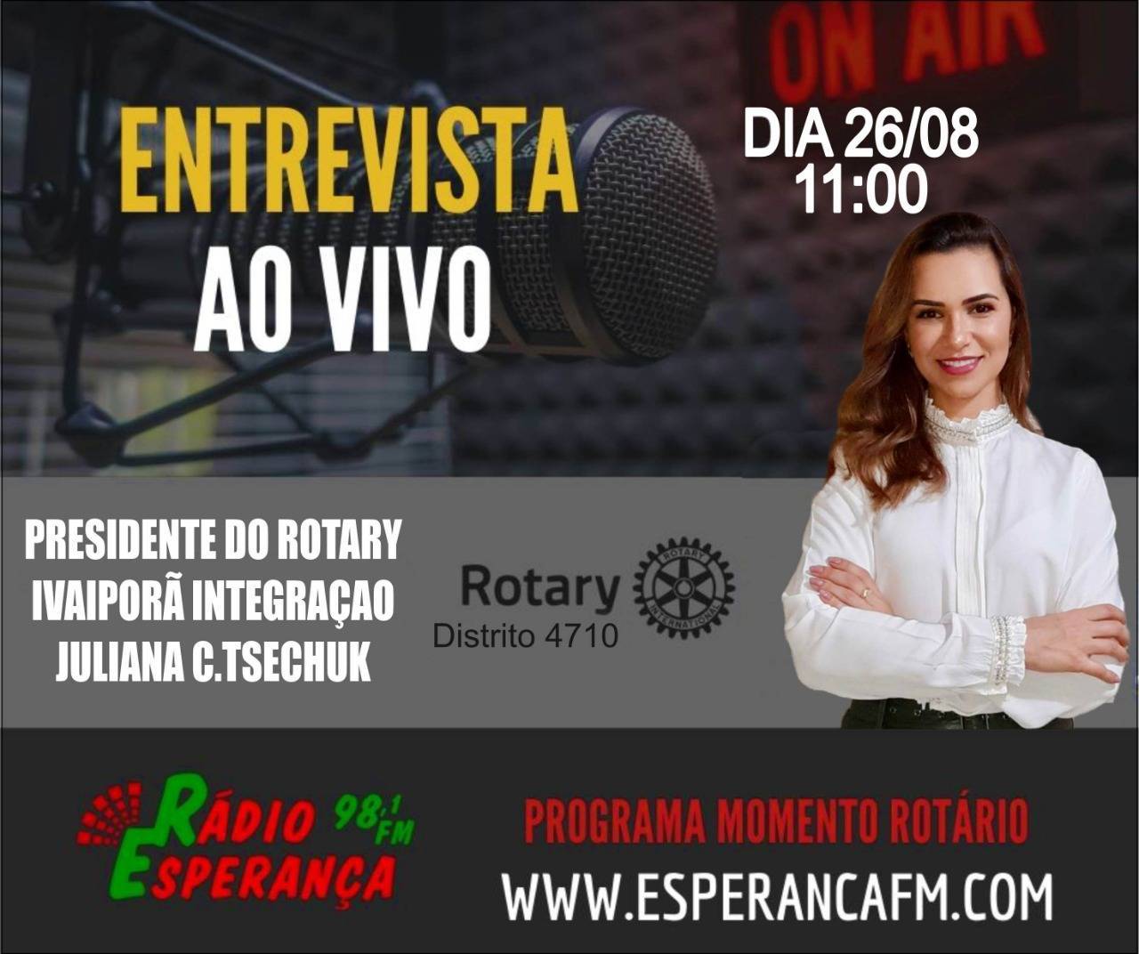 Na primeira fase do programa foram realizadas entrevistas com os governadores eleitos nos 31 Distritos do Brasil e nessa nova fase, que se inicia com a companheira Juliana, a rádio passa a entrevistar todos os presidentes dos clubes do Distrito 4710.