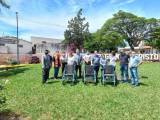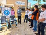 Na sequência todos seguiram para o Hospital Regional Cristo Rei, uma importante instituição e única no município para atendimento médico de urgência e emergência. Chegando ao hospital, a comitiva rotária foi acolhida pelo presidente da instituição, companheiro do Rotary Club de Astorga, Antônio de Assis Nunes e um grupo de colaboradores. Depois dos agradecimentos, o Governador Paulo Balla fez também a entrega de mais 03 cadeiras de rodas, também pelo Projeto Mobilidade Para Todos. O Governador conheceu as dependências do hospital e expressou sua grande satisfação em conhecer o atendimento humanitário que a comunidade recebe do hospital.