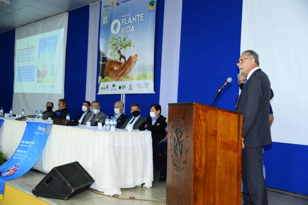 O Presidente da Comissão Distrital do Meio Ambiente, Governador Beto Baccarim, explanou sobre o Projeto Plante Vida, sua importância e parcerias que estão sendo buscadas com os clubes da Família Rotária no Distrito, com instituições públicas e privadas e com o consequente cumprimento da meta de plantar 250 mil mudas de árvores até o final da gestão 2023/2024. E para explicar sobre a parceria com o Instituto de Água e Terra do Paraná, IAT, convidou o chefe do escritório regional da entidade em Jacarezinho, Marco Antônio Pinto. Ele explanou as características das mudas, os diversos momentos em que elas serão disponibilizadas, os procedimentos técnicos e ambientais para que os parceiros que assinarem a adesão ao projeto terão que cumprir e finalizou dizendo que o IAT dará suporte antes, durante e depois da maturação e desenvolvimento das mudas plantadas, garantindo a eficácia da ação para o meio ambiente.