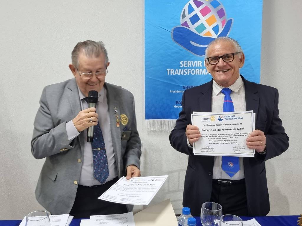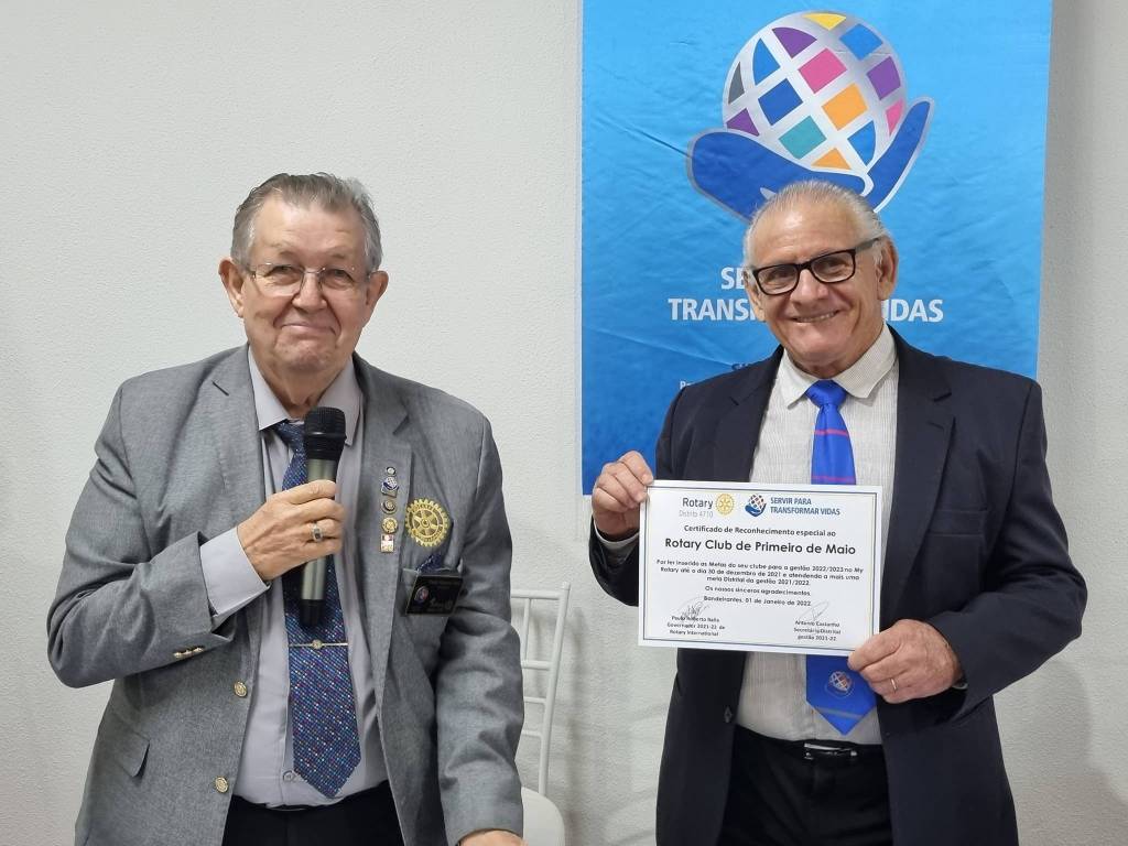 No dia 25 de março último passado, foi a vez do Rotary Club de Primeiro de Maio receber a visita oficial do Governador 2021/2022, Paulo Roberto Balla. Acompanhado de sua esposa, a primeira dama Aureliana Aparecida Balla, ele foi recepcionado na Casa da Amizade de Primeiro de Maio, pelo Presidente 2021/2022, Augusto Edson Evangelista, por seu Conselho Diretor e diversos companheiros de Rotary Club.