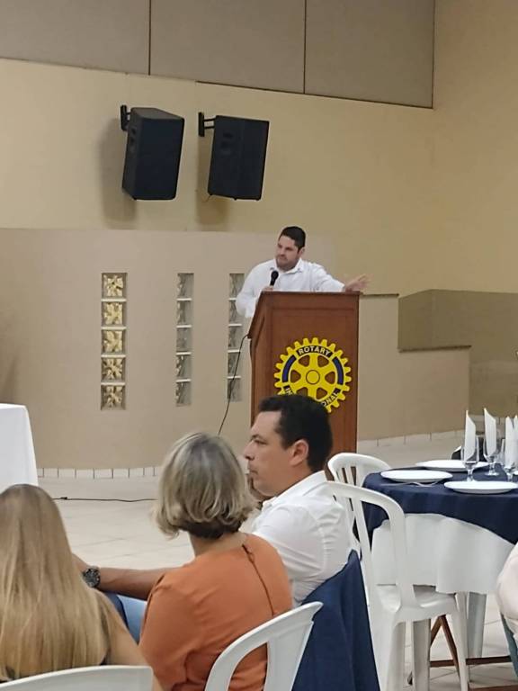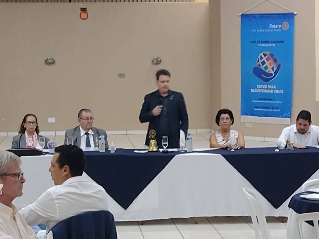 O presidente Carlos agradeceu a visita do casal governador ao clube, expôs um breve relato das atividades e projetos da sua gestão. Também explicou aos associados mais novos do clube, que de maneira bem simplória e a grosso modo, o Governador de um Distrito, é o representante do Presidente do Rotary Internacional, no caso o companheiro, Paulo Balla, que é responsável por nos trazer as mensagens, prioridades e projetos humanitários dos clubes de Rotary espalhados pelo mundo.