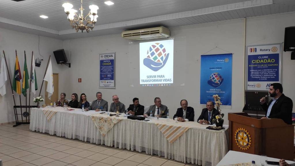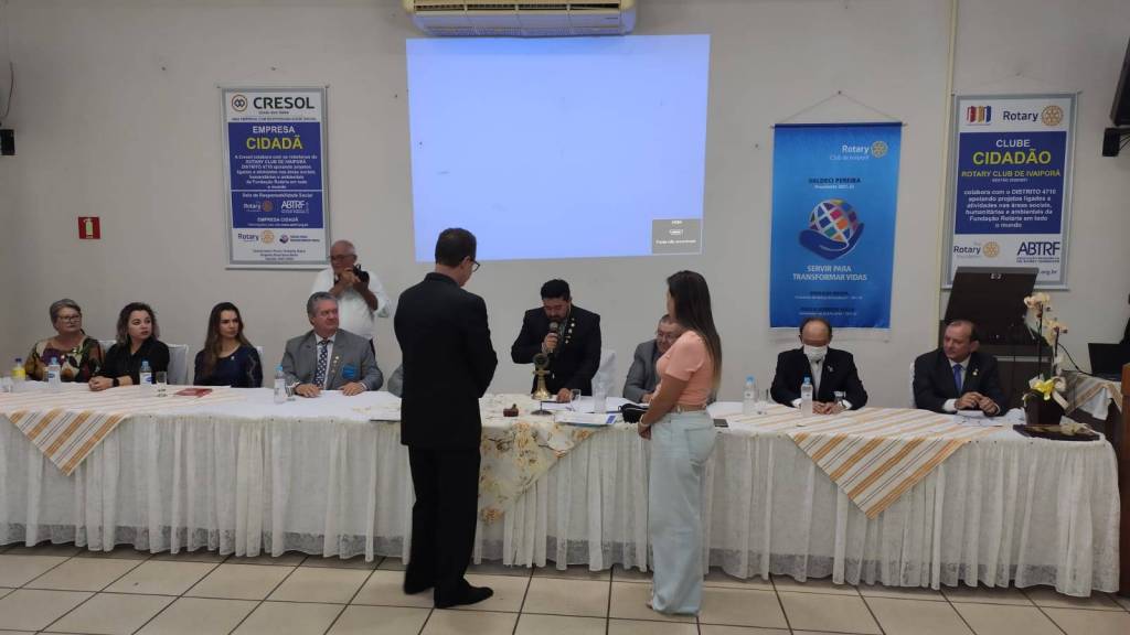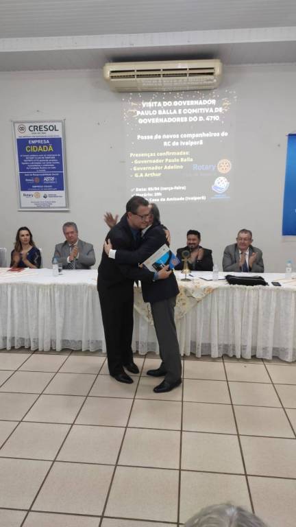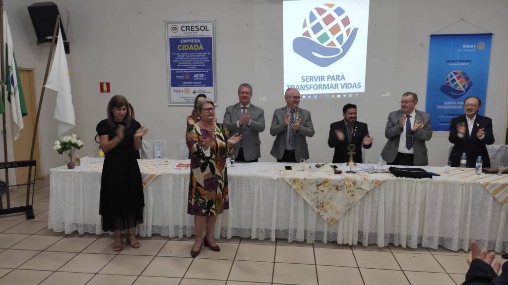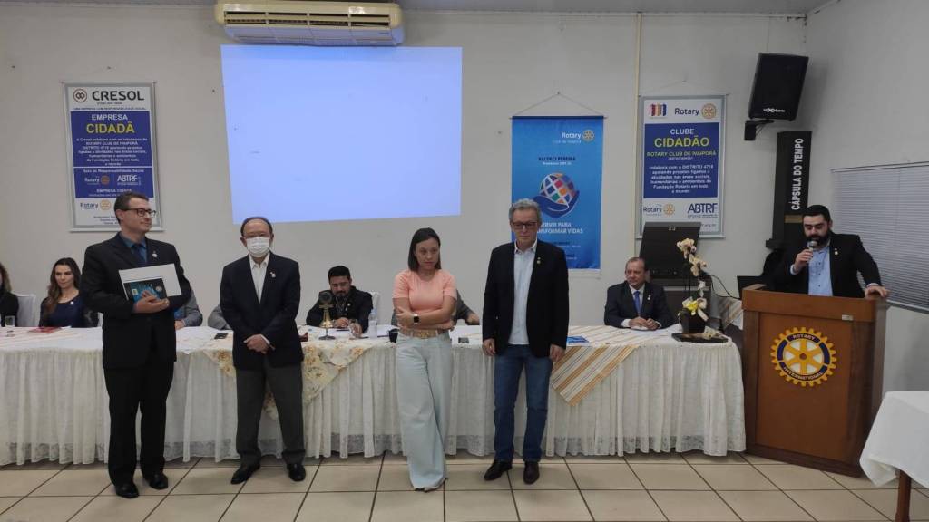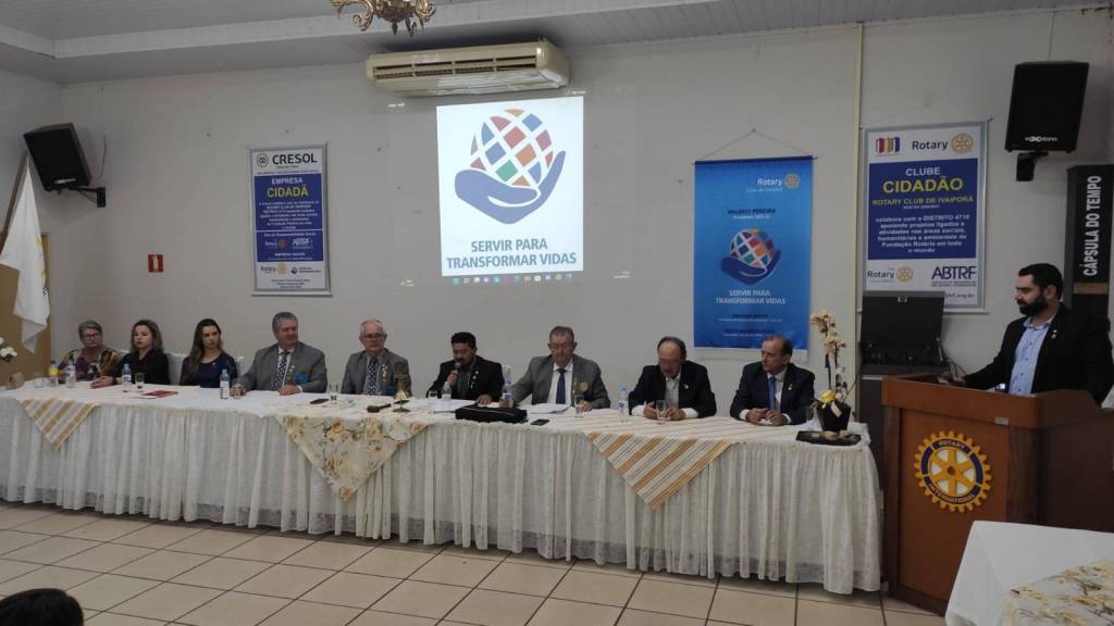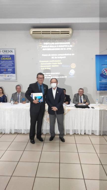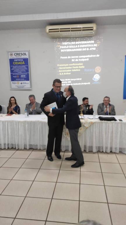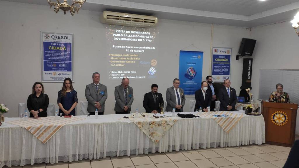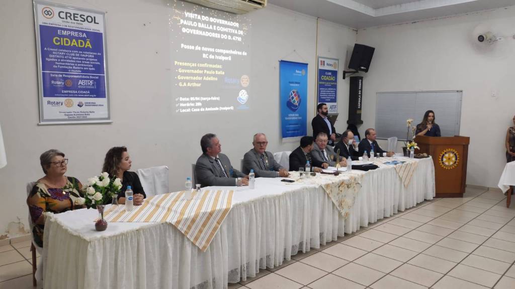 Em seguida, na Casa da Amizade de Ivaiporã, aconteceu uma reunião solene. A governamental foi recepcionada pela Presidente 2021/2022 do Rotary Club de Ivaiporã-Integração, Juliana Correa Tsechuck, pelo Presidente 2021/2022 do Rotary Club de Ivaiporã, Valdeci Pereira e pela Presidente 2021/2022 do Rotary Club de Jardim Alegre, Rosângela Rossato Pachulski e dezenas de companheiros dos 3 clubes.