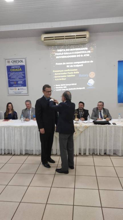 Na ocasião o Governador empossou dois novos associados no Rotary Club de Ivaiporã e usando da palavra, fez uma síntese das realizações da sua gestão e projetos até aqui realizados, dando ênfase às causas relacionadas ao meio ambiente. Expôs ainda os resultados alcançados e as metas atingidas na sua gestão, enalteceu e agradeceu a presença do diretor do IAT - Instituto Água e Terra, um valioso parceiro do Projeto Plante Vida e comunicou a sua permanência na gestão do Distrito por mais uma gestão.