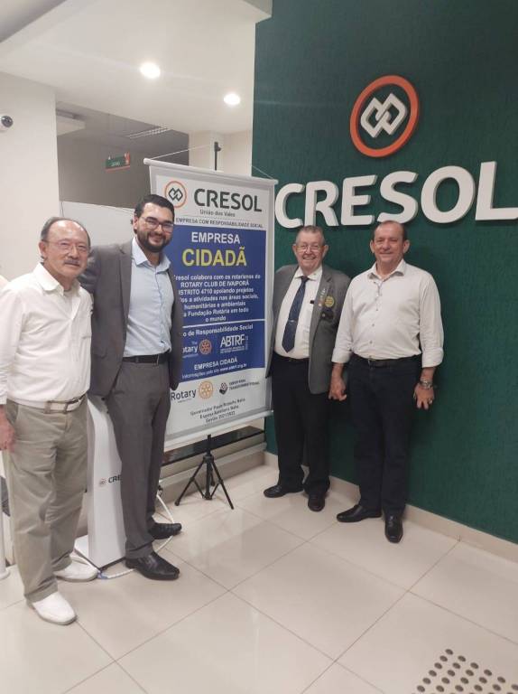 Em seguida, a comitiva foi recebida no Centro Administrativo da Cresol União dos Vales (Empresa Cidadã do Rotary Club de Ivaiporã), onde o companheiro Cléber Acácio mediou a confirmação de parcerias entre o Distrito 4710 e a empresa.