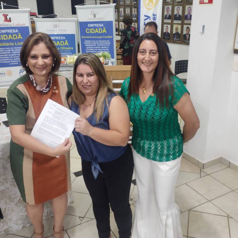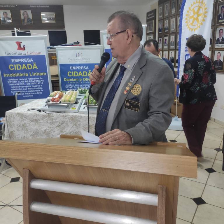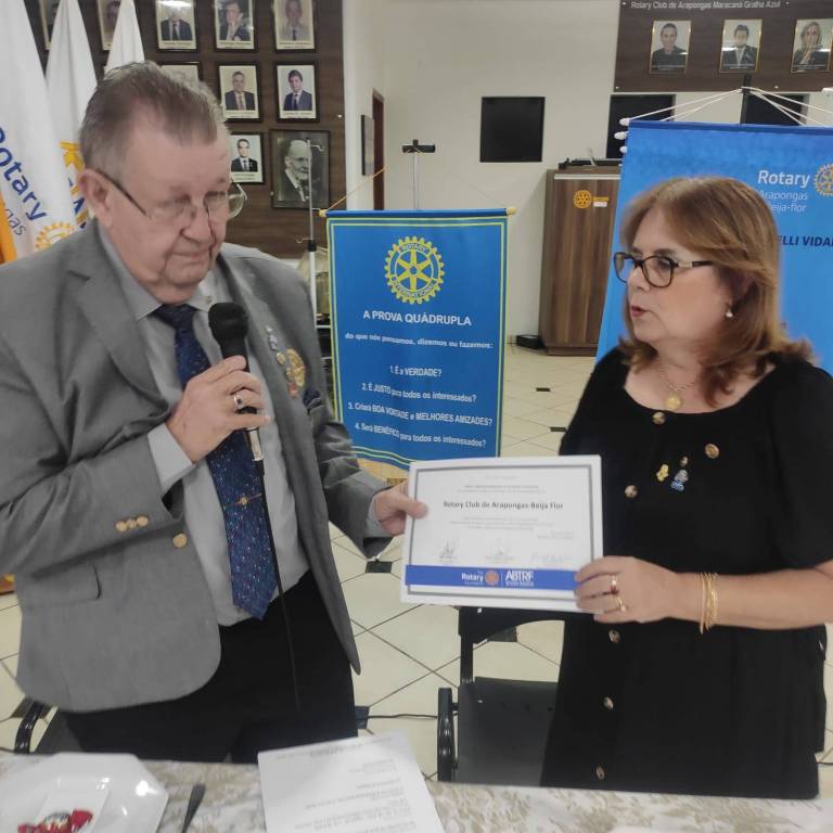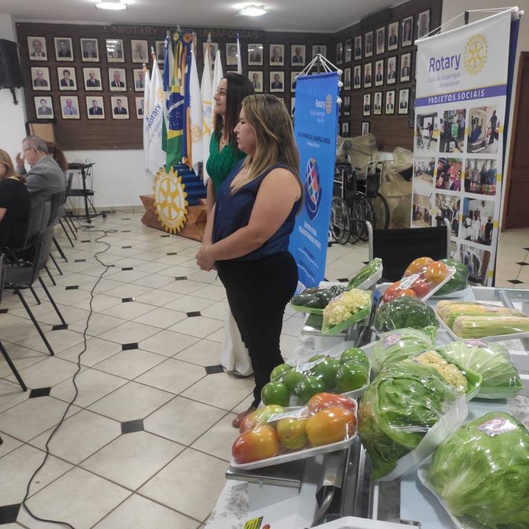 Após a posse a 4 novos associados: Bruna Caroloine Calixto Ravazzi, Guilherme Otacilio de Jesus, Vicky Vergara e Jorge Luís da Silva, o Governador realizou a entrega de um projeto de subsídio distrital do Rotary Club de Arapongas Beija-Flor, o qual destinou os recursos para a APROAR – Associação dos Produtores Amigos da Terra, que possibilitou a aquisição de duas embaladoras (seladoras) a filme, usadas na agroindústria. Esses equipamentos serão utilizados por famílias de agricultores que fazem parte da associação e permitirão execução de um melhor trabalho e garantia de que as hortaliças, legumes e frutas produzidas no assentamento tenham melhor conservação e higiene estando em melhor embalagem. Os equipamentos embalam com plástico e “vedam” os produtos, deixando-os mais vendáveis e protegidos. Além de trazerem essa melhor qualidade dos produtos, impactarão também na qualidade de vida dos consumidores e na renda da família camponesa. São em torno de 92 famílias que pertencem a APROAR e vivem dessa renda, os mesmos fazem entregas na comunidade, além de, através de PMAE (estadual e federal) atendem diversas entidades assistenciais bem como escolas com as merendas. O produto não comercializado é doado a diferentes entidades.