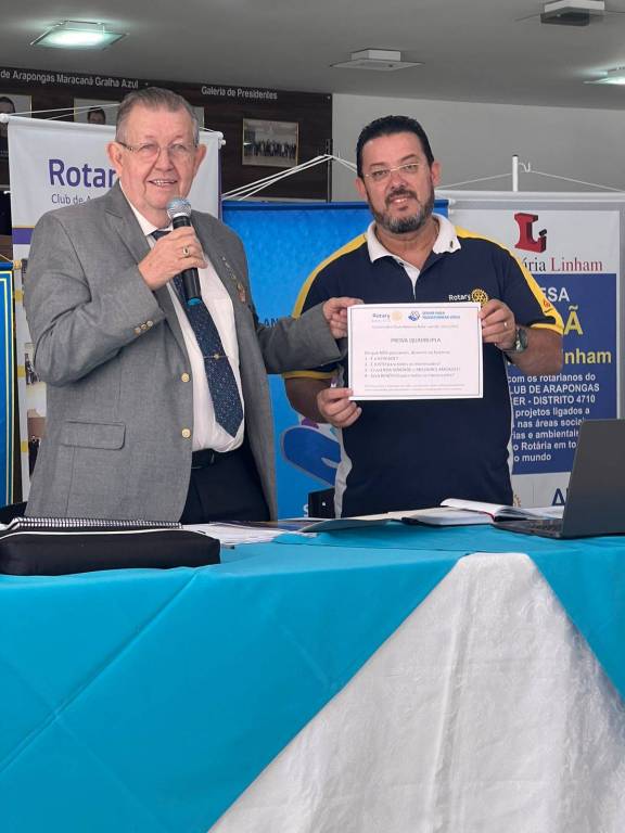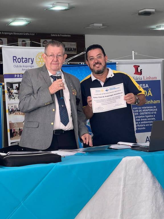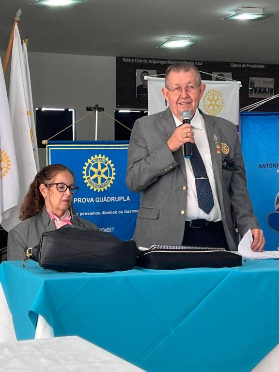 O casal governador foi agraciado com dois aventais personalizados do Rotary Club de Arapongas Amanhecer. Ao fazer uso da palavra, discorreu sobre a busca de recursos em projetos. O Governador instruiu a todos sobre como realizar projetos, onde buscar recursos e como maximizá-los. Também falou sobre a entrega de cadeiras de rodas a tribos indígenas e aproveitando a ocasião, a esposa do Governador, companheira Aureliana Balla, falou sobre a cultura indígena e em como as tribos tratam as crianças que nascem com deformidade.