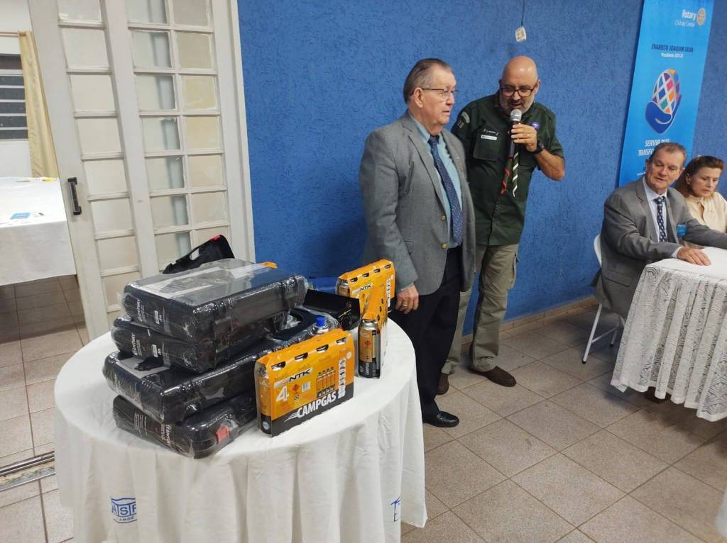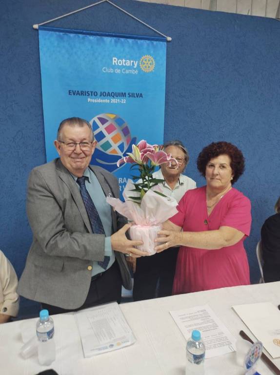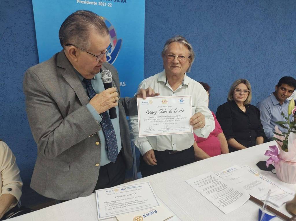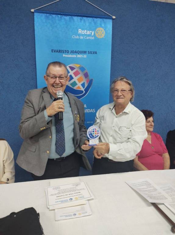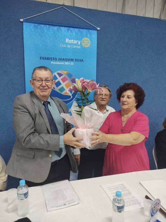 À noite, os associados do Rotary Clube de Cambé receberam o Governador e comitiva em uma festiva na Casa da Amizade de Cambé. A reunião foi marcada pelo clima de companheirismo e alegria pelo retorno às atividades presenciais. Presentes à festiva, além dos integrantes da comitiva já citados, a Governadora Assistente 2021/2022 do Grupo 08, Maria Regina da Silva Pinto e o Presidente 2021/2022 do Rotary Club Cambé-Hugo Gonçalves, Valdinei Tomoteo Rocha, a Companheira Elvira Lopes Nascimento, Vice-Presidente do Rotary Club de Londrina-Cinquentenário Ouro Verde, o Companheiro Fernando Meneguzzi, Presidente Eleito 2022/2023 e o Chefe do Grupo Escoteiro Harmonia Cambé, Sr. Ricardo Pimenta Neves, que foi agraciado com a entrega dos produtos do Projeto de Subsídio Distrital do clube. Após a abertura pelo Companheiro Idevar Campaneruti, no ato substituindo o Presidente 2021/2022, Evaristo Joaquim Silva, ausente por estar em tratamento de saúde, o Governador Paulo outorgou certificados ao clube e a associados pela participação nas ações do Distrito e pelo cumprimento de algumas metas, bem como realizou o que tem sido praxe em suas visitas oficiais, ou seja, uma prestação de contas das ações e projetos da gestão. O Governador discorreu sobre os projetos da próxima gestão, no que foi aplaudido pelos presentes, que deram a ele a certeza de que estarão engajados nos esforços de fazer o Distrito alcançar as metas propostas para 2022/2023. Ao final todos foram brindados com um jantar oferecido pelo clube.