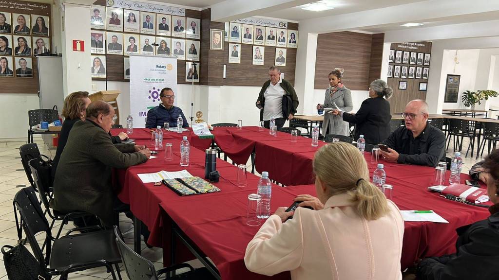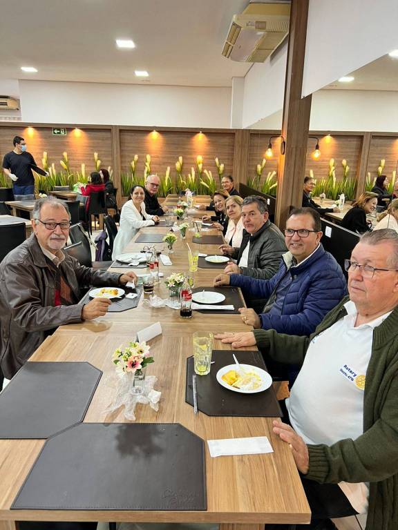 Às 10 horas participaram de uma reunião com o Conselho Diretor do Clube, para avaliações, comunicados e explanação de metas e estratégias da gestão e também para a posse de 05 novos associados no clube: Célia Claro Mantovan, Odete Lieko Kakihata Yamaguchi, Vlademir Casturino Vieira, André Antônio de Pedro e Inês Azevedo Rodrigues Oliveira. Mais uma vez o Governador enalteceu o esforço da Comissão de DQA do clube e afirmou categoricamente que são ações efetivas nesse sentido que têm levado para longe o fantasma do redistritamento.