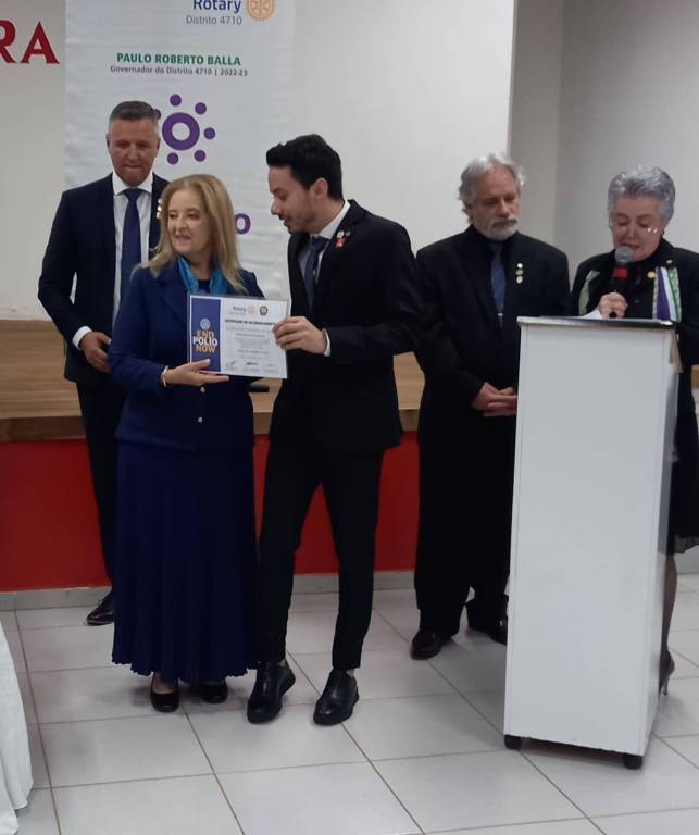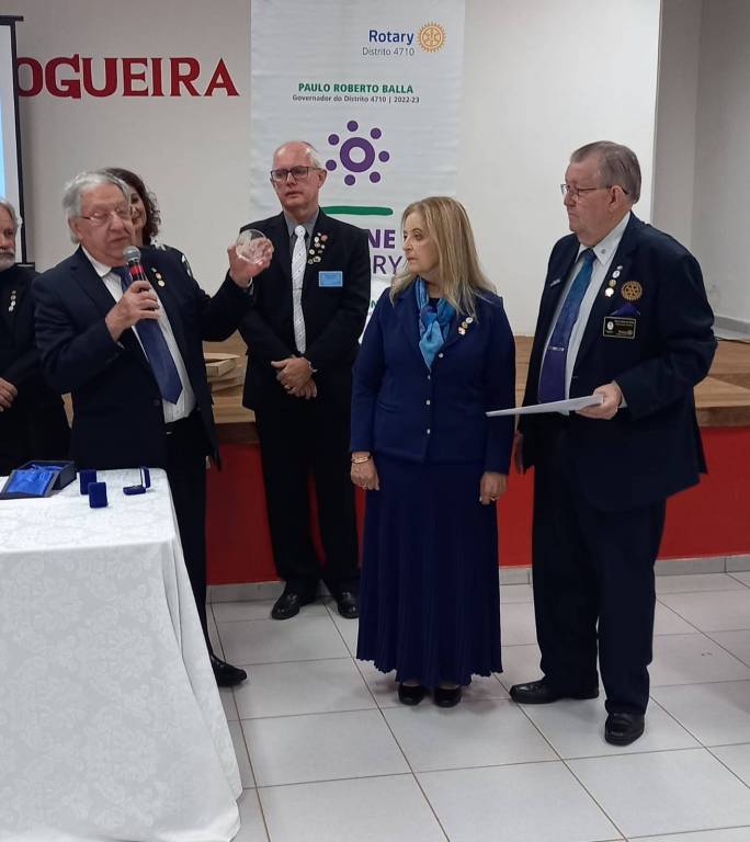 No sábado passado, dia 26 de novembro, aconteceu em Bandeirantes, nas dependências do auditório do CEEP - Centro Estadual de Educação Profissional Ozório Gonçalves Nogueira e na Casa da Amizade, uma bonita e bem organizada festa de premiações. Sob a regência do Governador 2022-23 Paulo Roberto Balla, que na ocasião se fazia acompanhar por sua esposa, a Primeira Dama Aureliana Balla, o evento teve o serviço protocolar feito pela Companheira Maria do Carmo Lopes Paes Landin, do Rotary Club de Londrina - Cinquentenário Ouro Verde e com o apoio de Companheiros de diversos Rotary Clubs.