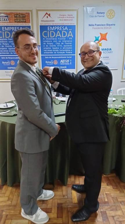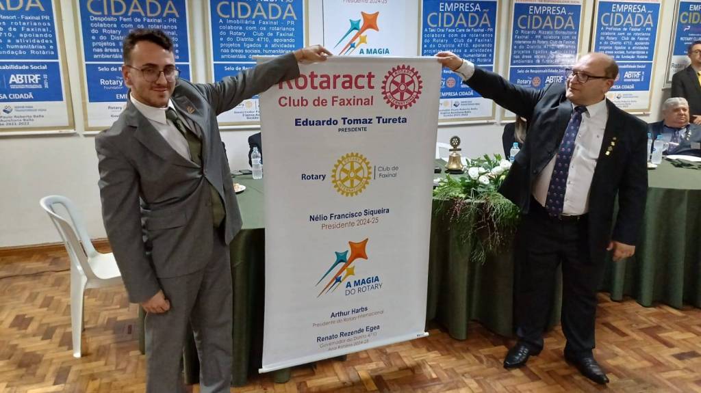 No dia 26 de junho, última quarta-feira do mês, como já é tradição no Rotary Club de Faxinal, aconteceu a Transmissão de Posse entre os presidentes: Alessandro Olegário de Proença 2023/2024 para Nélio Francisco Siqueira 2024/2025. O evento foi abrilhantado pela presença de convidados de várias regiões como, Jacarezinho, Santo Antônio da Platina, Marilândia do Sul, Califórnia, Ortigueira, Borrazópolis, Ivaiporã, Londrina, Jardim Alegre e Grandes Rios. Contou com a presença do Governador Renato Egea e sua Esposa, Marco Esquiçato e esposa e a presença de autoridades locais.