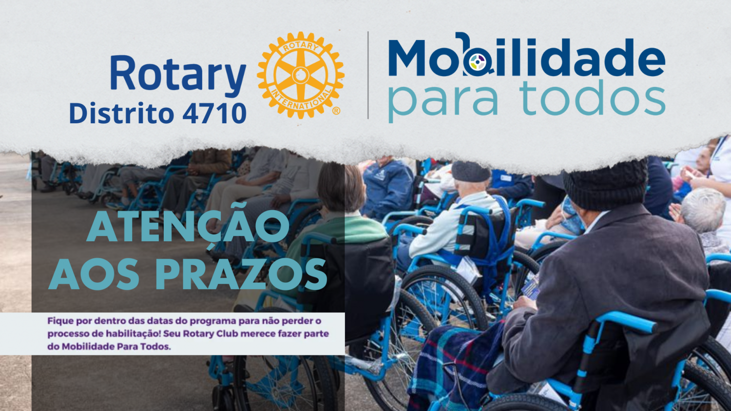 O Programa Mobilidade Para Todos começa o ano da Magia com uma iniciativa de grande impacto social. Serão distribuídas 488 cadeiras de rodas gratuitamente, sendo 244 no modelo GN2 e 244 no modelo GN3. A ação, que não tem custo para os beneficiários, envolve a participação ativa de clubes do Distrito 4710 do Rotary.