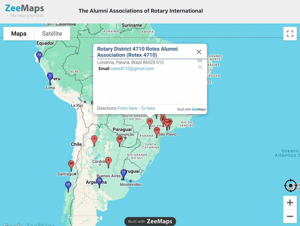 O nome "Distrito 4710 Rotex Associação de Alumni" agora faz parte do mapa oficial das Associações de Alumni do Rotary em todo o mundo, destacando nossa presença e relevância internacional.