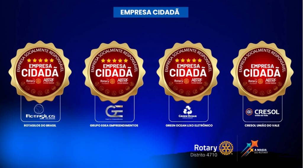 - O selo oficial de Empresa Socialmente Responsável da The Rotary Foundation e ABTRF