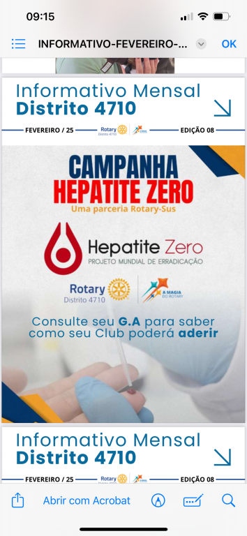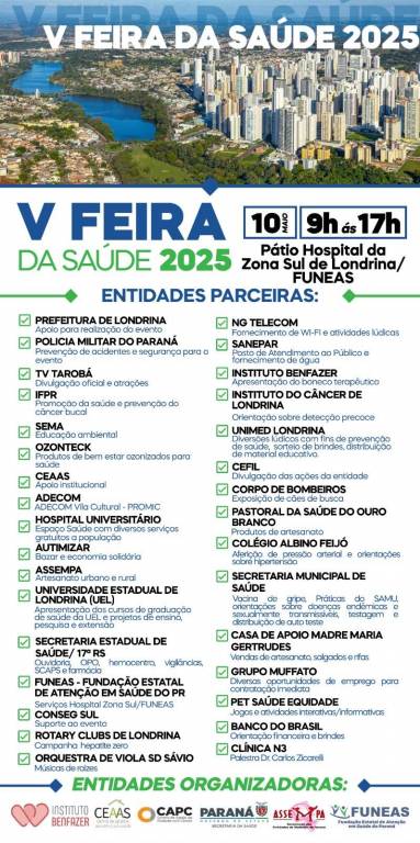 Neste sábado, 10 de maio, Londrina será palco de uma ação que marca o início prático da participação do Rotary no maior projeto global de erradicação das hepatites virais: a Campanha Hepatite Zero. Em parceria com a Secretaria Municipal de Saúde e a FUNEAS, os Rotary Clubs de Londrina realizarão testagens rápidas gratuitas para Hepatite B e C durante a V Feira da Saúde, que acontece das 9h às 17h, no pátio do Hospital da Zona Sul.
