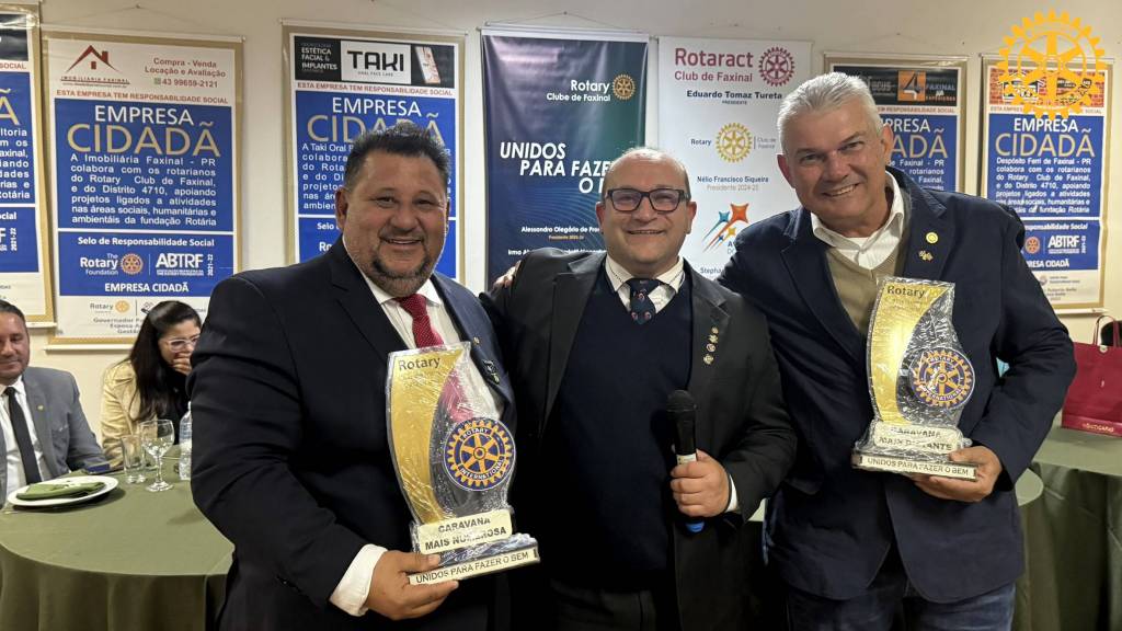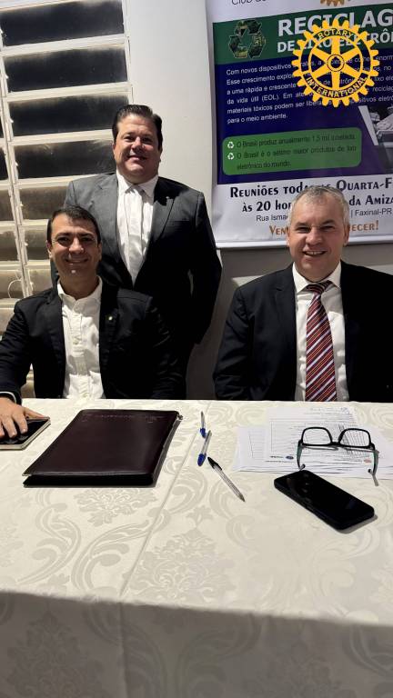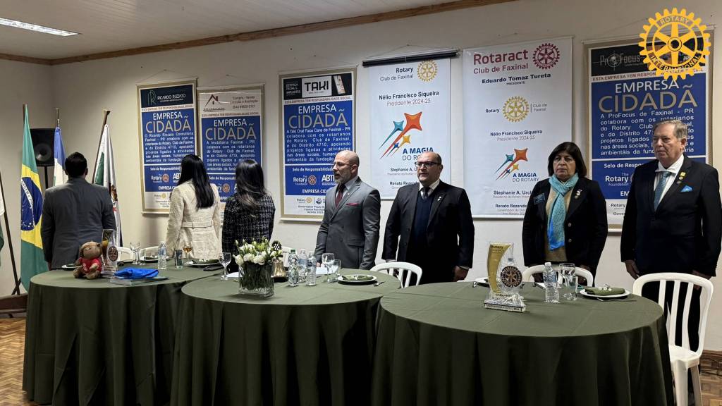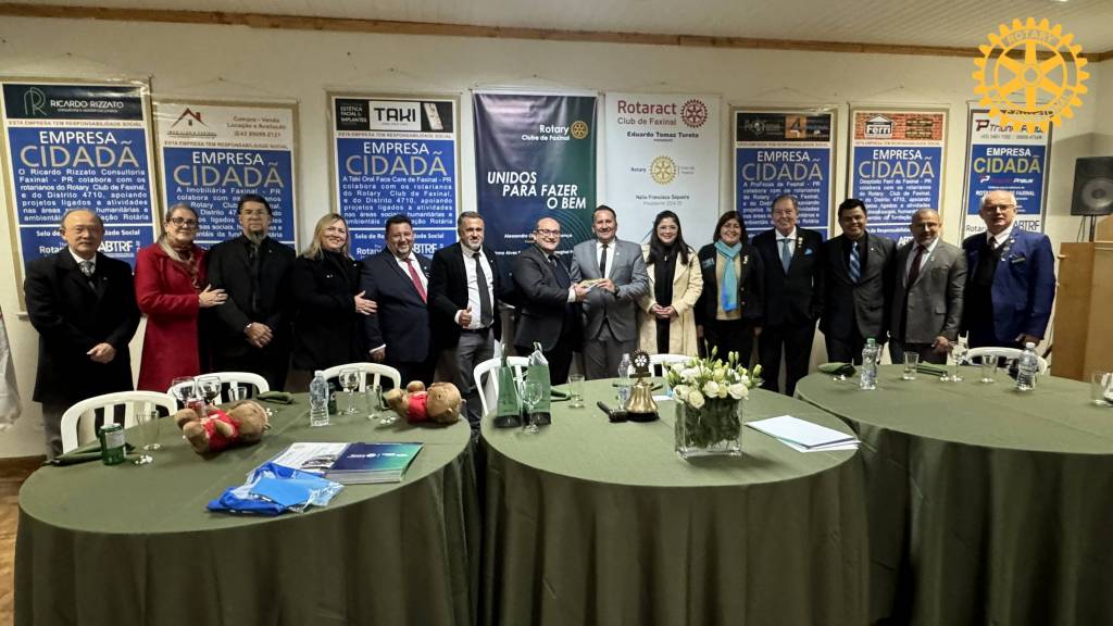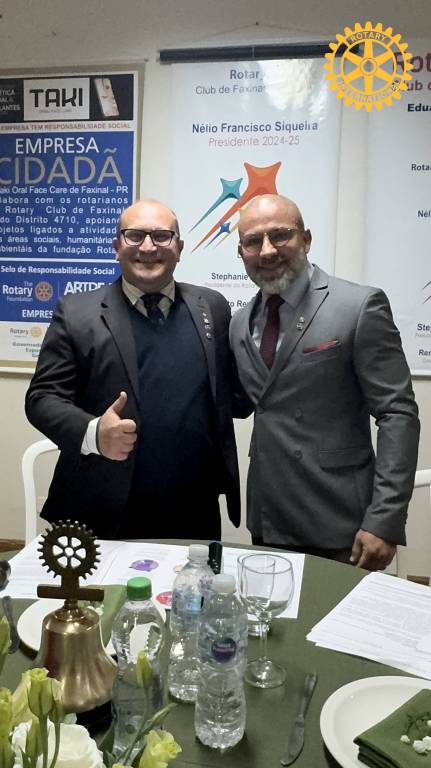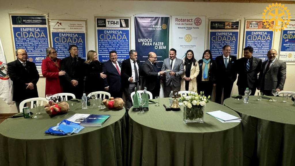 No dia 25 de junho de 2025, na Casa da Amizade de Faxinal, Paraná, aconteceu a Posse da Nova Diretoria do Rotary Club de Faxinal. Na ocasião o então Presidente Nélio Siqueira deu posse ao novo Presidente Alessandro Proença. Na sequência foram admitidos dois novos Associados: João Davi Davantel e Guilherme Scaff, muita emoção nessa posse, sendo Dona Maria Olinda a Madrinha de ambos, filhos e netos de Rotarianos, darão continuidade ao legado da família. Um evento marcante nesse dia foi a criação do Rotary Club Satélite Faxinal/Rio Branco do Ivaí. Sendo Empossado o Chair (Presidente) Jáson Despalaches e seus novos companheiros de Clube, entre eles o Prefeito Pedro Taborda Desplanches, Patrícia Gonçalves, Márcio Oliveira, Felipe Bueno, Paulo Silva, Celso Santos, Amélia Junqueira, Cláudia Rosset, Jobson Desplanches, Pedro Desplanches, Paulo Pires, Ivone Desplanches, Ariane Fernandes, Renata Desplanches, Josias Desplanches e Tábata Desplanches. Todos membros fundadores do novo clube que serão apadrinhados Pelo RC Faxinal e RC Ivaiporã. Ainda no mesmo evento, o RC de Faxinal anunciou que neste ano estará completando 50 anos de história. O evento estava com 100% dos associados de Faxinal, e vsitantes de outros clubes, California, Ortigueira, Londrina, Ivaiporã e Borrazopolis. Contamos ainda com a presença da Governadora Irma Mariotti e o Prefeito de Faxinal, Hermes Antonio Santa Rosa, que também é membro do RC Faxinal e padrinho do presidente empossado. Sucesso!!!!