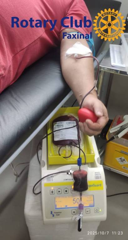 Ontem, dia 07 de outubro de 2025, aconteceu no Centro de Saúde Milton Gaudêncio Auersvald, mais uma Doação de Sangue, parceria entre a Secretaria de Saúde de Faxinal, Hemocentro de Apucarana e Rotary Club de Faxinal. A ideia do projeto é fazer com que a comunidade ajude o Banco de Sangue de Apucarana a manter os estoques necessários para transfusões, cirurgias e outros procedimentos que utilizam esse líquido tão precioso para a nossa existência, doando sangue uma pessoa pode salvar até quatro vidas, uma dádiva cedida por Deus para que um ajude muitos e muitos ajudem muito mais. Uma corrente do bem que foi canalizada pelo Rotary Club de Faxinal para salvar vidas, um ato simples e que ajuda com um imenso carinho as pessoas que estão precisando e, esse paciente nem sabe de onde veio a ajuda, mas tenha certeza que o agradecimento está nas orações da família da pessoa que recebeu o sangue.