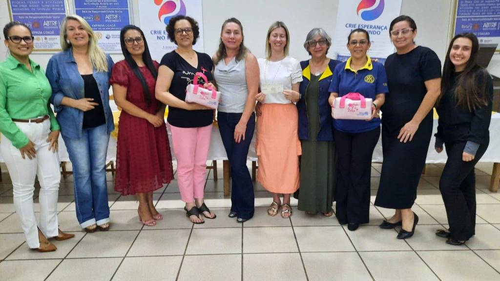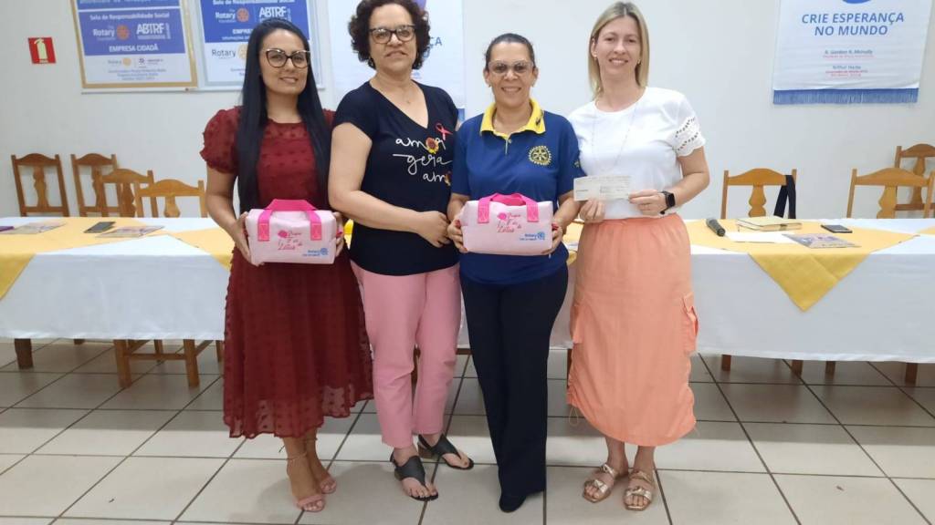 Após a apresentação do tema da campanha, a presidente da Comissão das Mulheres Advogadas da Subseção da OAB de Ivaiporã, Christiane Singh entregou absorventes arrecadados durante a campanha Outubro Rosa da OAB Ivaiporã e na sequencia foi a vez das Companheiras do Rotary Club de Ivaiporã Elza Machada , Sueli Gevert e Edna fazerem a entrega do cheque simbólico que será usado para custear as bolsas térmicas confeccionas para todas as integrantes do grupo Flor de Lotus.