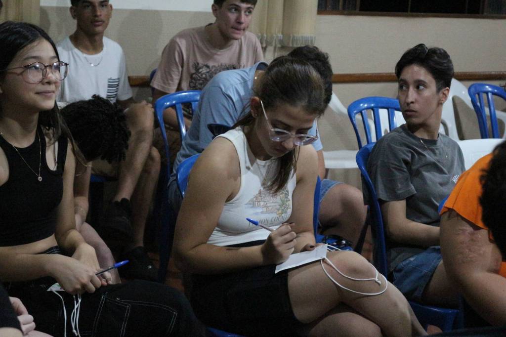 Após entenderem a dinâmica do evento e a organização de Rotary, Rotaract e Interact, a dinâmica de apresentação comandada pelo coordenador do evento já proporcionou um momento de reflexão sobre seus próprios perfis jovens, seus momentos de vida e o pensamento com relação ao futuro.