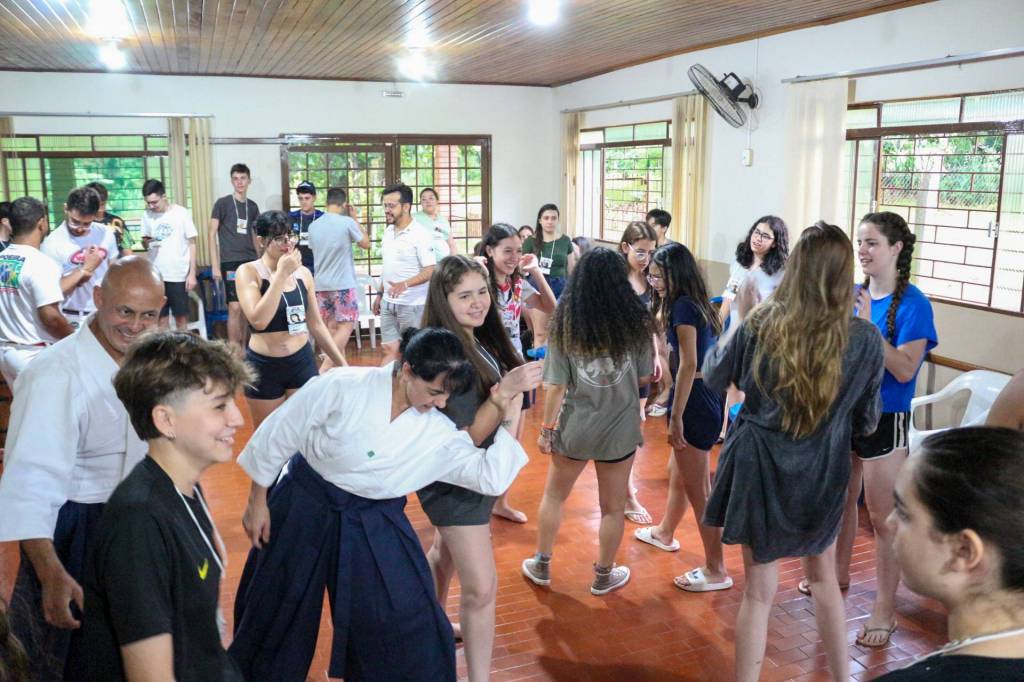 Ainda no sábado repleto de atividades, a palestras sobre diversidade cultural incluiu uma imersão nas práticas do Aikidô e da Capoeira, lideradas por Sensei Jefferson e a Sensei Carol juntamente com o Grupo de Capoeira Maculelê.