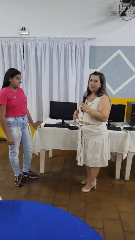 A reunião do dia 06 último, foi uma festiva especial em nosso clube. Através da parceria com a Ong E-Letro, de Londrina, realizamos a entrega de 03 computadores seminovos a alunos selecionados pela Escola Municipal Leda de Lima Canário, de Bandeirantes.